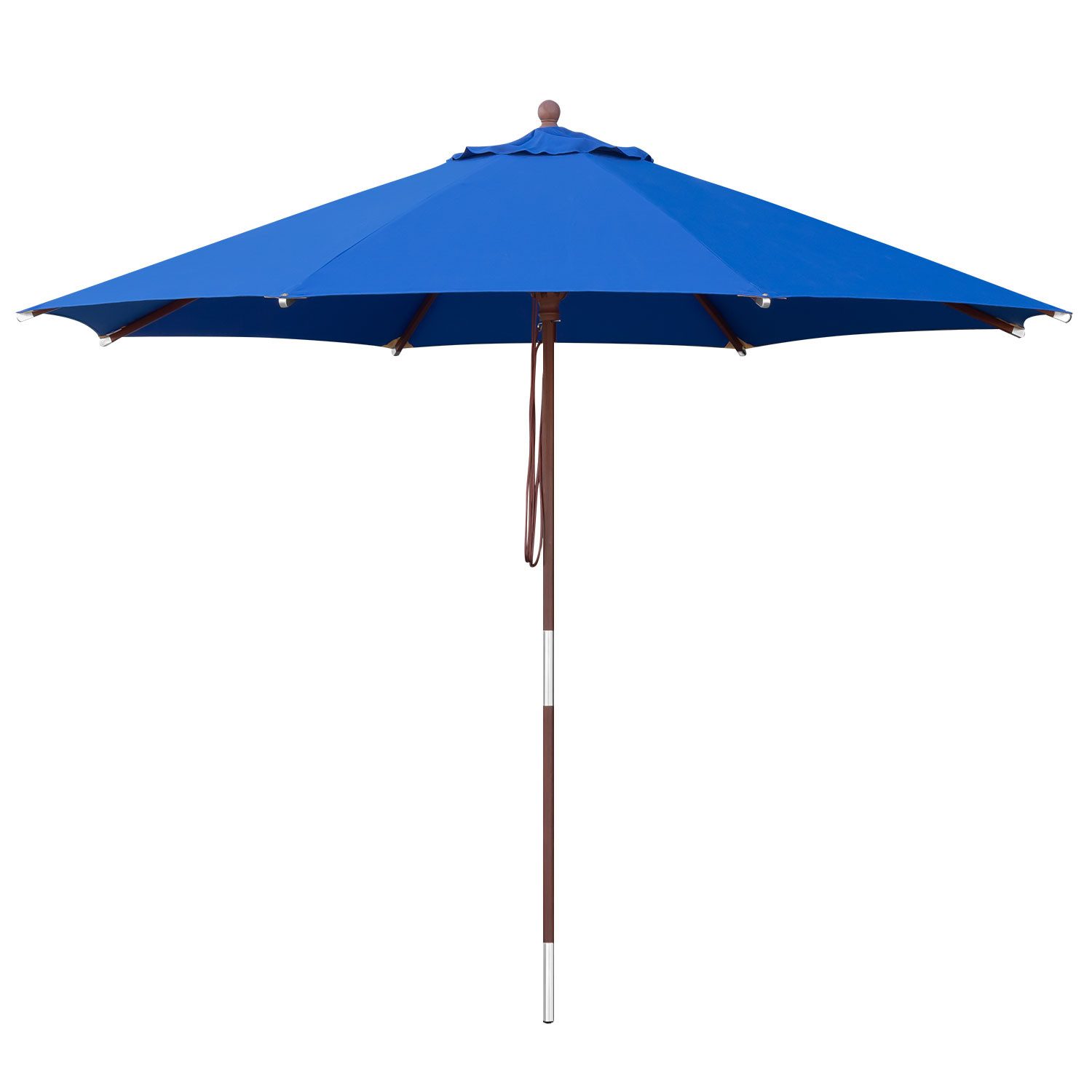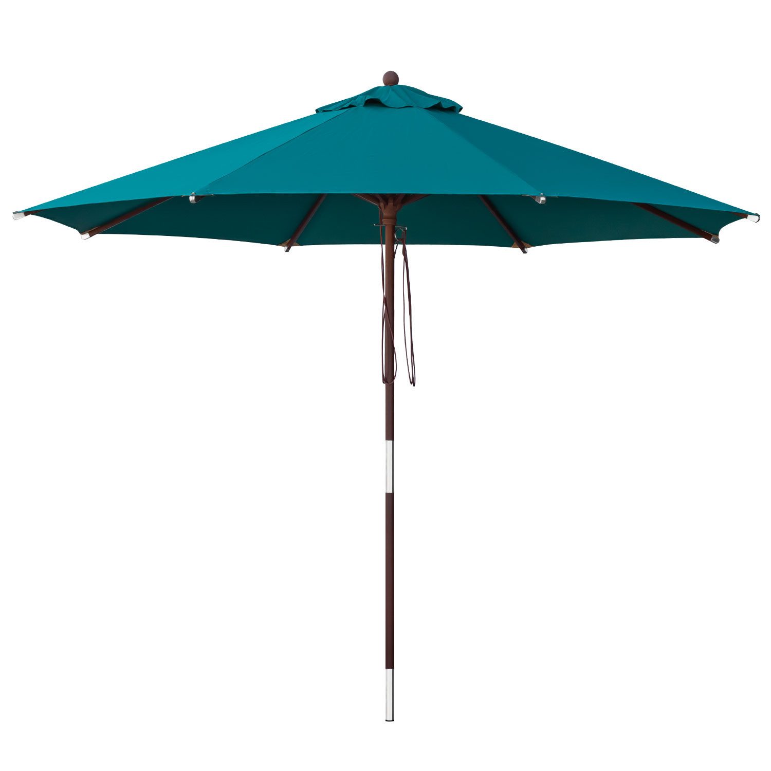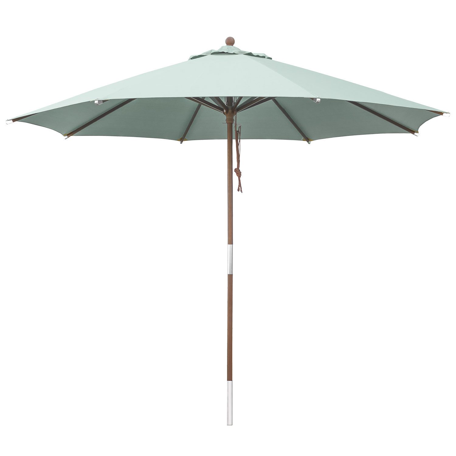 Gestänge: - dicker, zweiteiliger Stamm mit einem Durchmesser von 38 mm - Hartholz - teakfarben, lackiert für höhere Witterungsbeständigkeit - Verbindungsstücke und Beschläge sind witterungsbeständig - Strebenabschlüsse aus glänzendem Aluminium