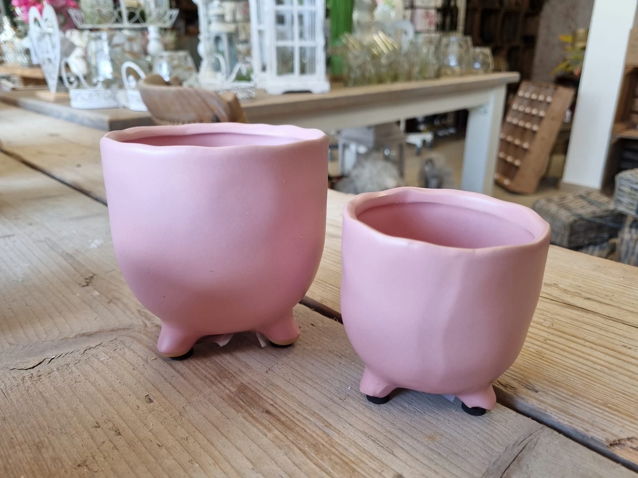 Übertopf Set Tirana rosa mit Füssen 11x10 und 8x8 cm Keramik