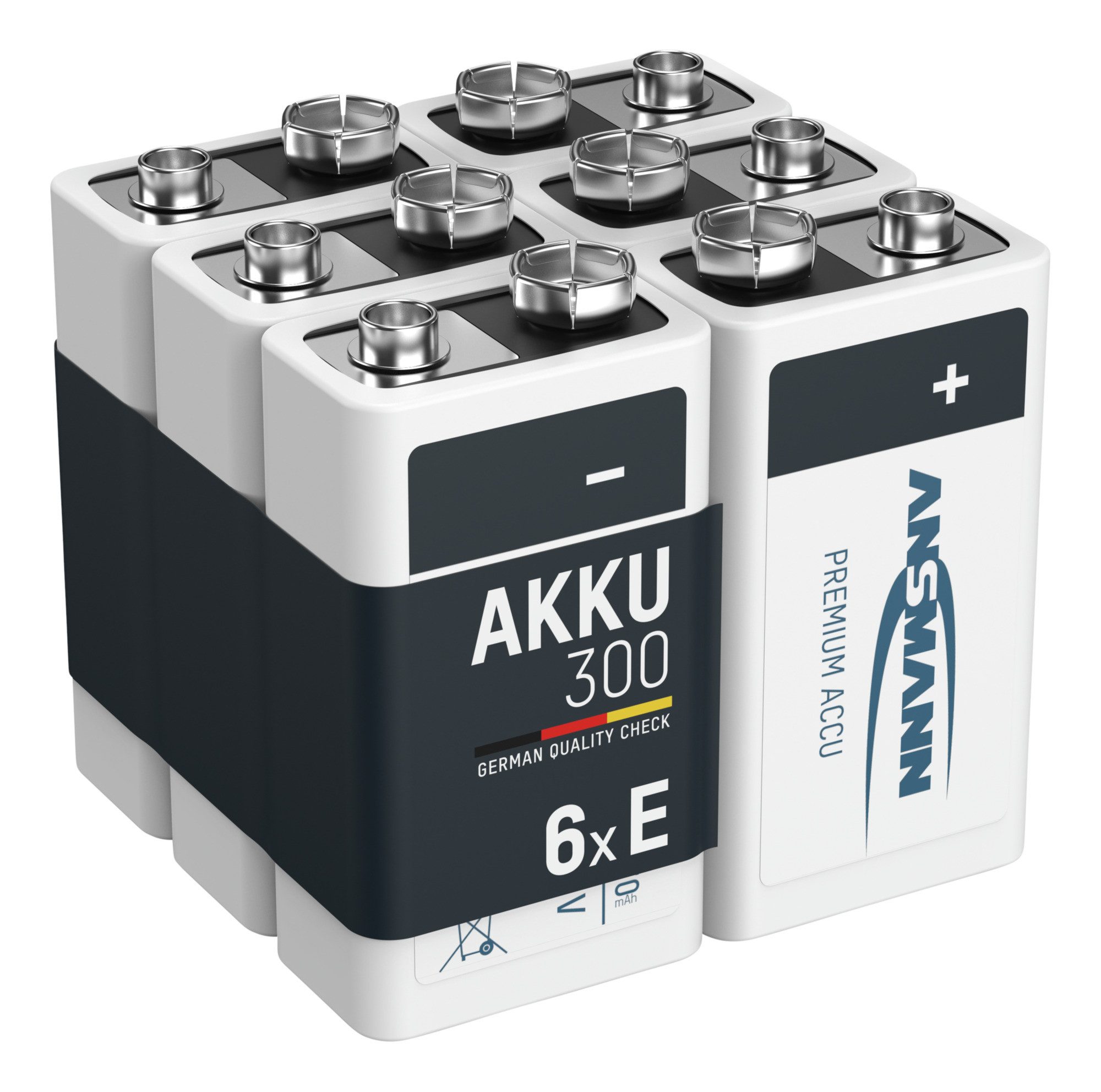 Lieferumfang | 6× Nickel-Metallhydrid Akku 9V E-Block 300 mAh |