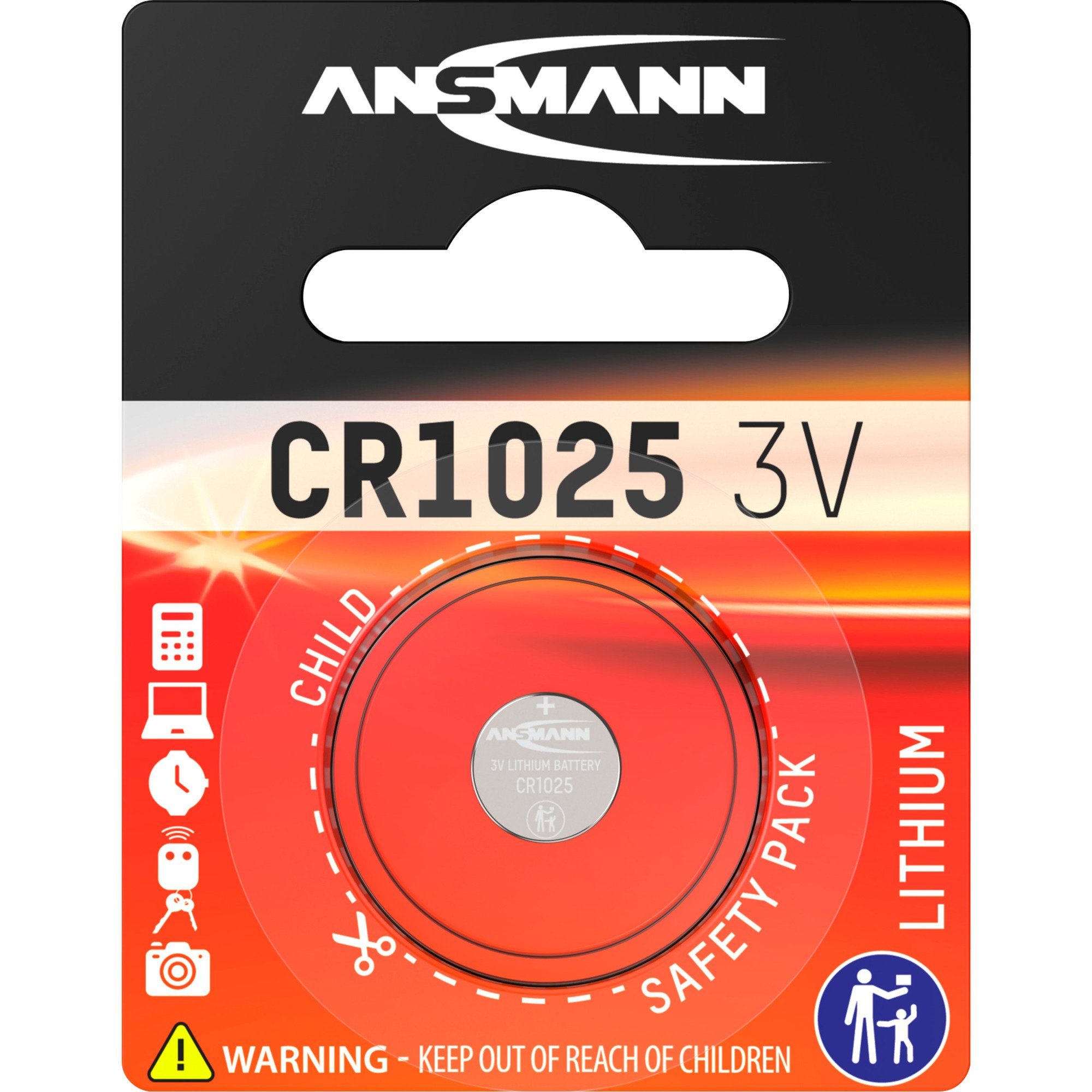 Ansmann Lithium Knopfzelle CR1025, Batterie, (1 Batterie
