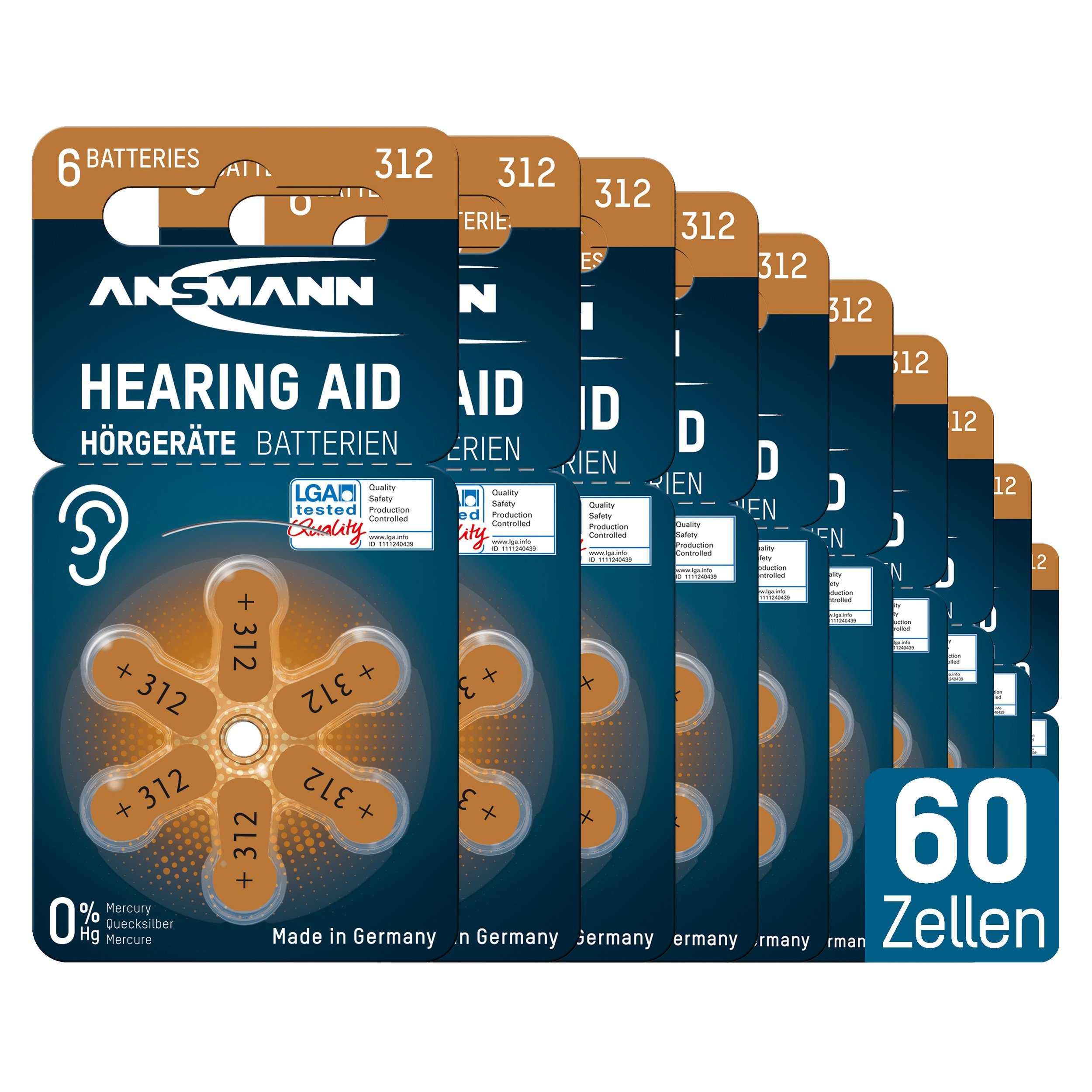 • 60x ANSMANN Hörgerätebatterien Typ 312 braun 1,4V