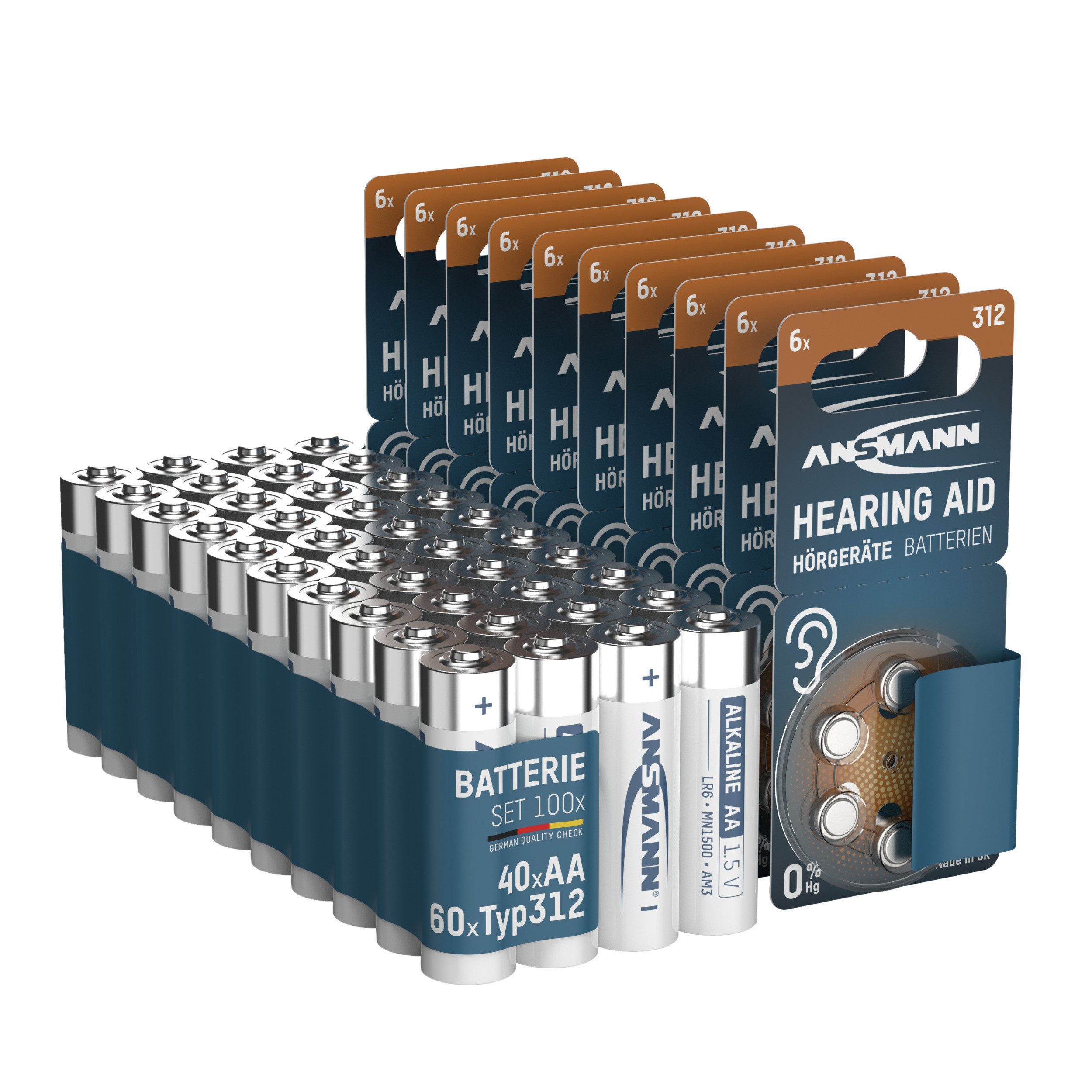 60x ANSMANN Hörgeräte Batterien Typ 312: