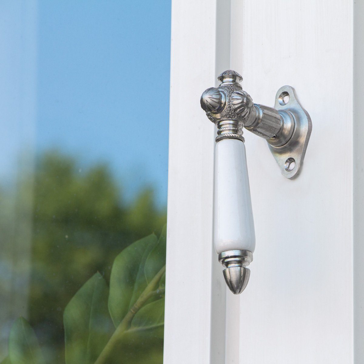 Ihr Fenster soll ein antikes Aussehen erhalten? Dann ist dieser spitzen Langgriff Ihre beste Wahl. Das matte Nickel wirkt wunderbar antik . der weiße Porzellangriff ist sehr edel.
