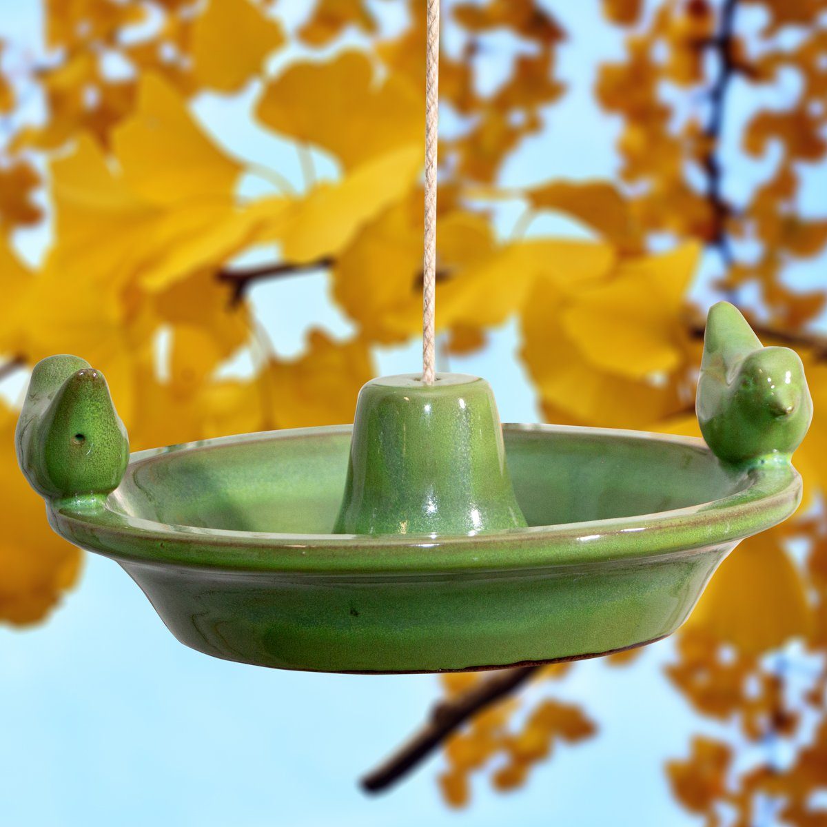 tags: Dekoration, Antik, Gartendekoration, Garten, Tränke, Vögel, Nostalgie, wetterfest, Tierfiguren, Vogelfigur, mediterran, mediterraner Stil, Vogel, Futter, Wasserbecken, Wasserschale, Vogelbecken, Vogeltränke, Vogelbad, Keramik, hängend, grün