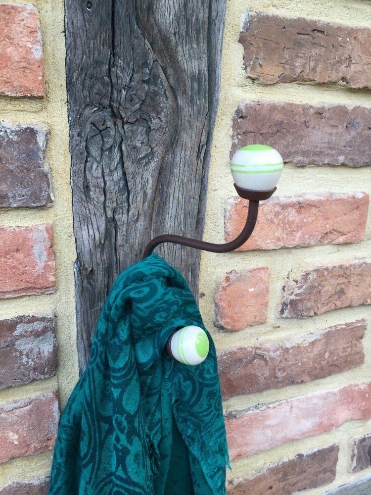 Lieferumfang: 1 Garderobenhaken mit Keramik-Kugeln, grün, Eisen braun inkl. Schrauben zur Befestigung