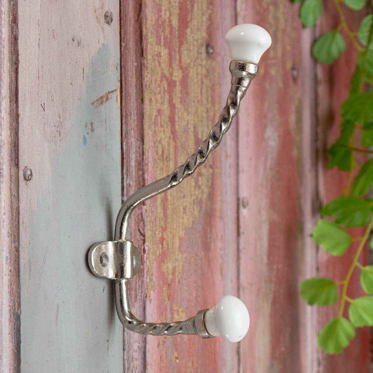 Garderobenhaken Kleiderhaken, verziert, Porzellan, Eisen, Silber, weiß, H 17,5 x B