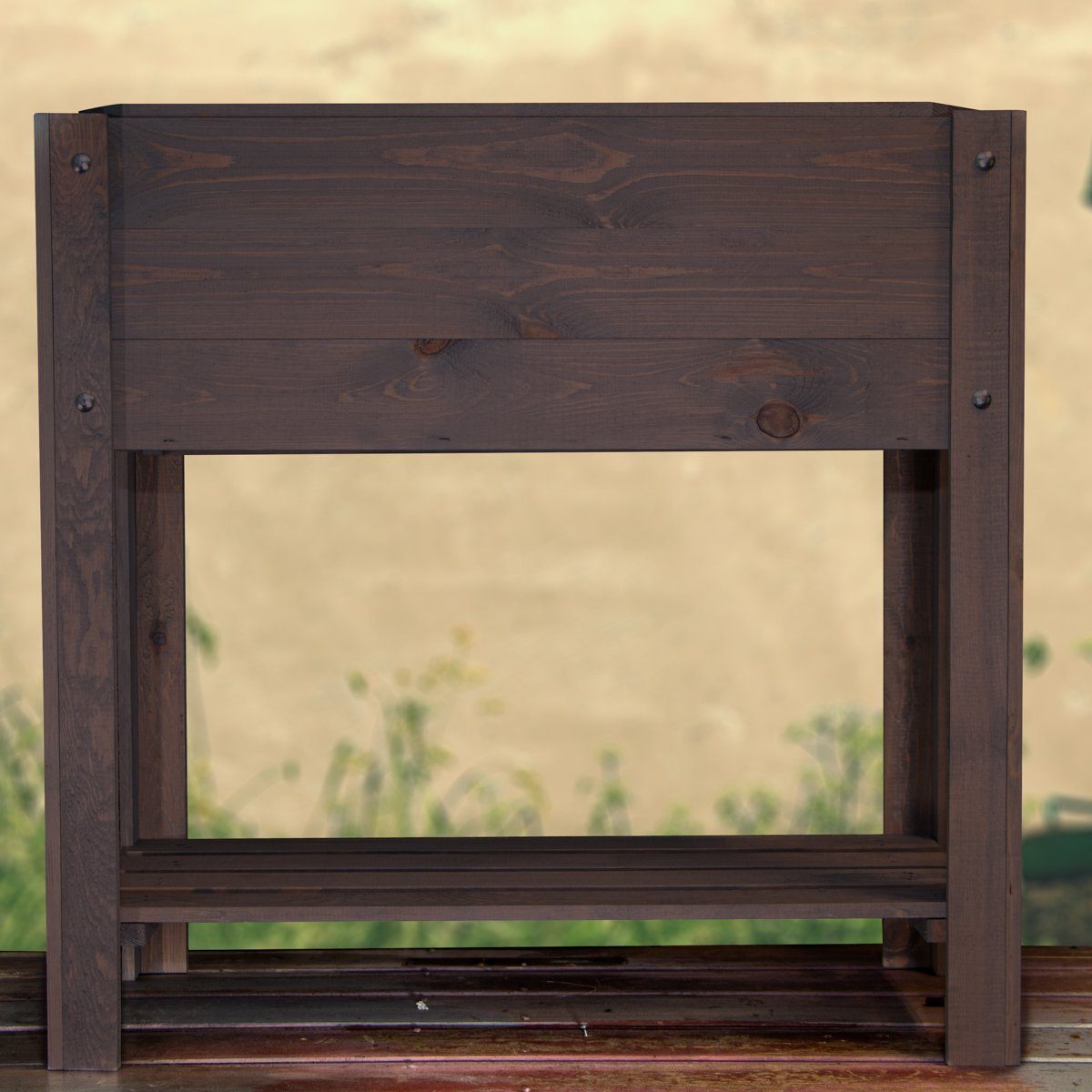 Lieferumfang: 1 Hochbeet, braun, 2 Ablagen, Holz