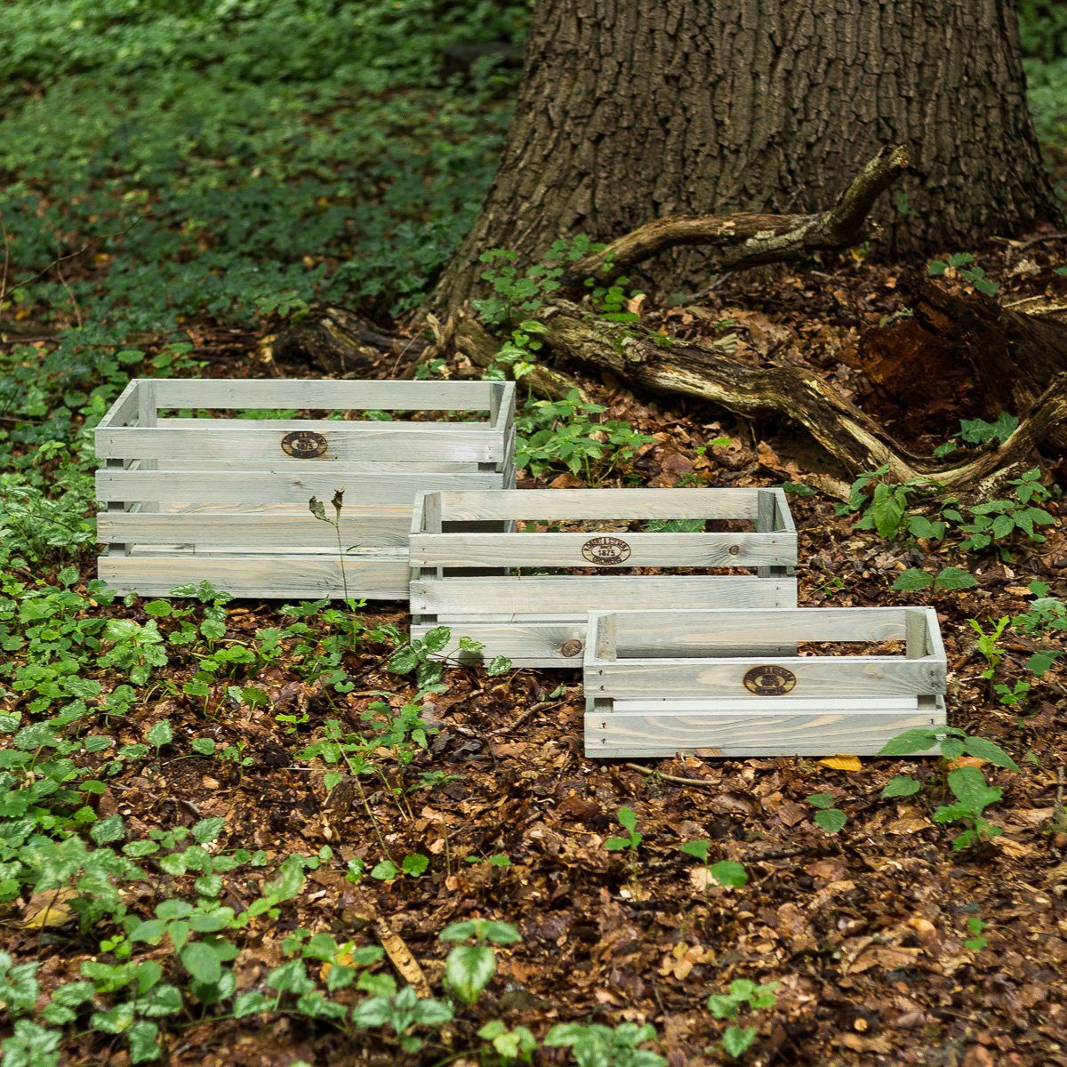 Wunderschöne, rustikale Obstkisten im „Natur Used Look“ als 3er Set.