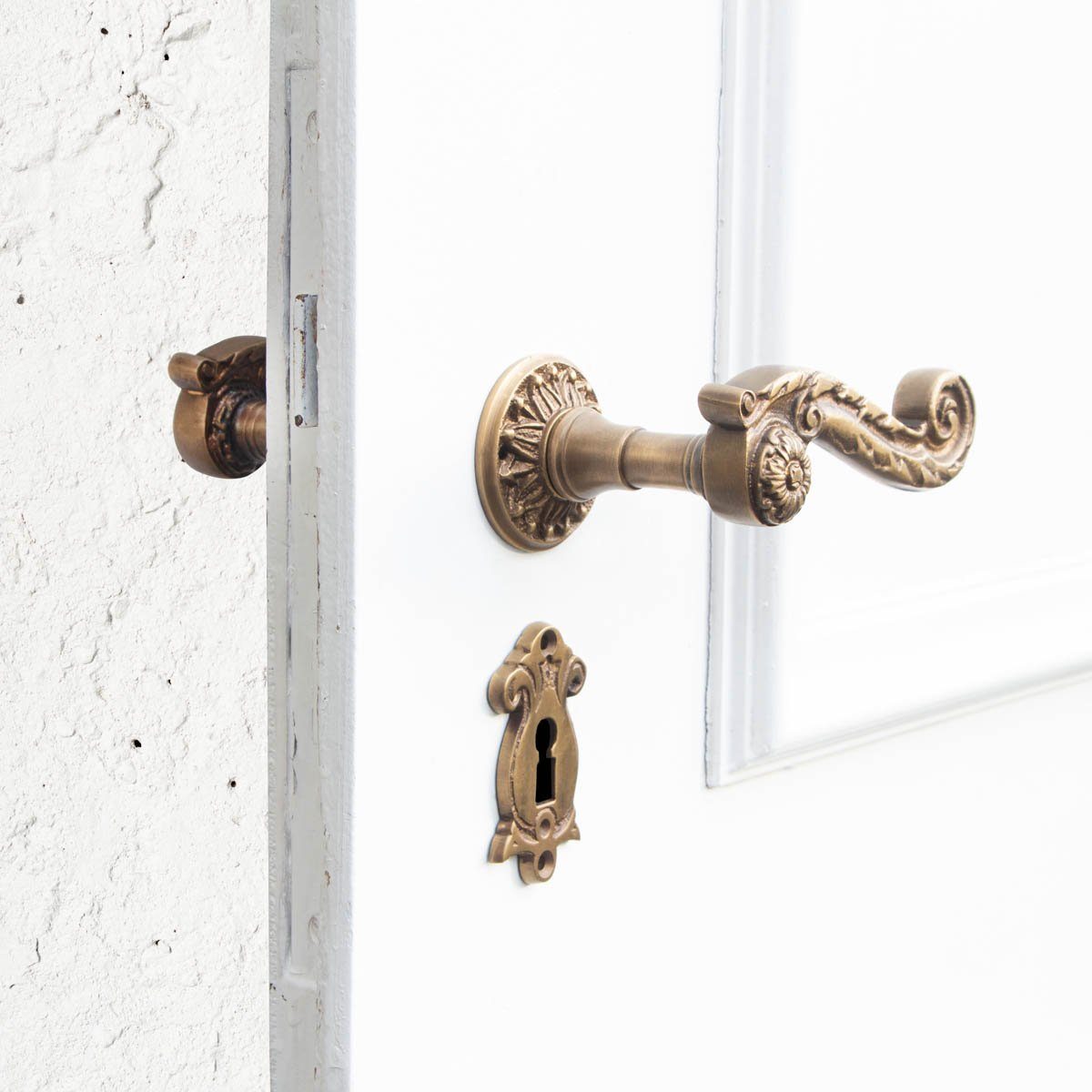 So bestechen sie durch hochwertigste Qualität und bieten ein wunderbares Produkt im Меню des historischen Ambientes. Das wie original antik wirkende Set, besteht aus feinziselierten Türklinken und schönen Rosetten. Es ist äußerst massiv und hochwertig gefertigt.