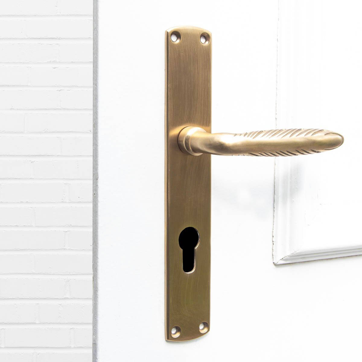 Antikas Türbeschlag Drückergarnitur mit Langschildern für Haustüren, PZ72, Messing