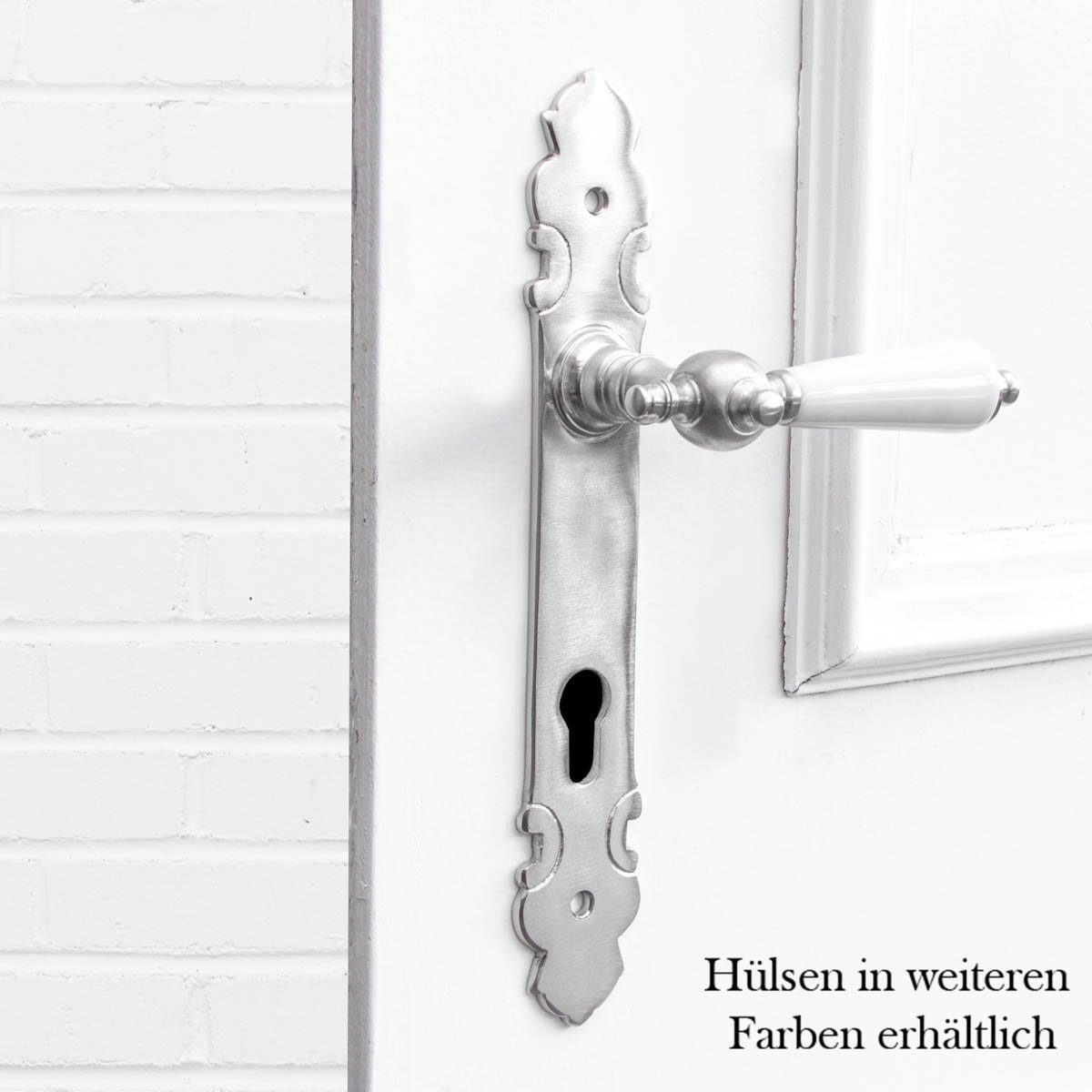 Die Porzellan-Farbe der Türklinken-Griffe ist Elfenbeinfarben. SIe können diese in 4 weiteren Farben wählen.