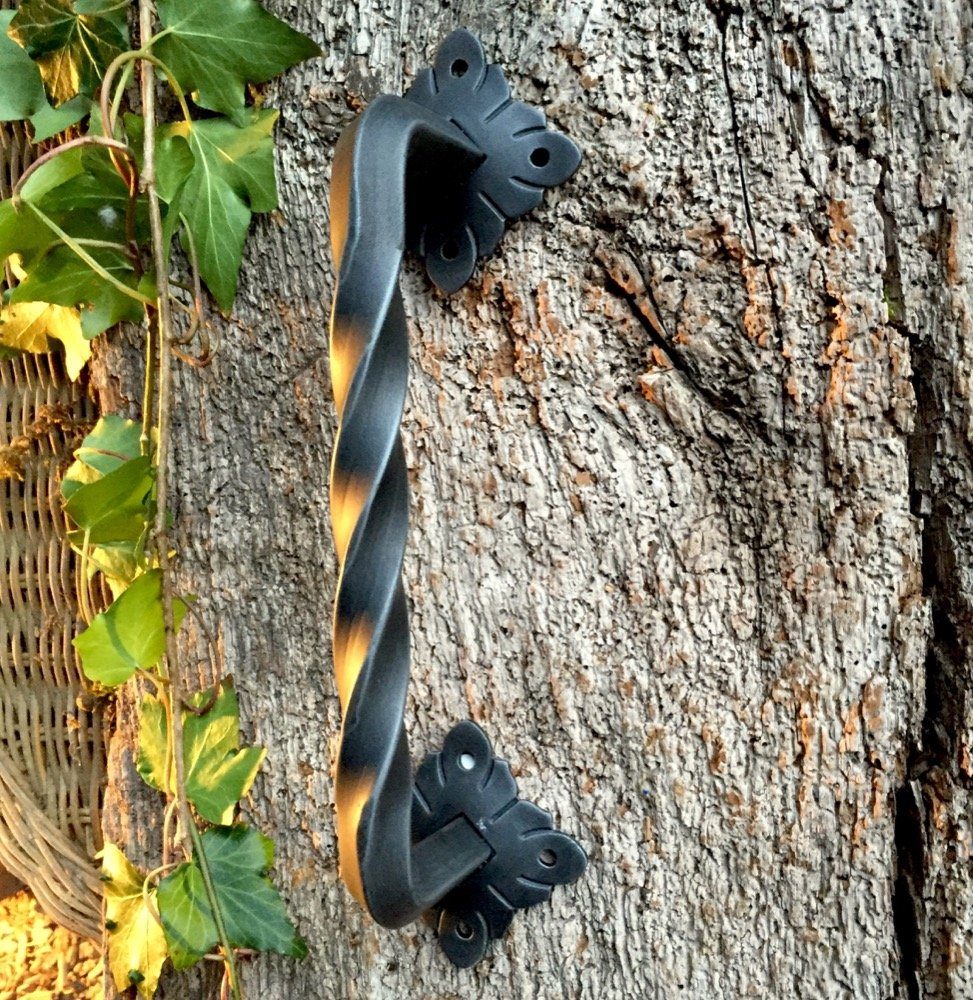 Ein in hervorragender Qualität gefertigter Schmiedeeisen Griff aus der Rubrik: Antike Torbeschläge - in Italien handgefertigt! Dieser selbstverständlich nichtrostende Ziehgriff - er wurde aus Schmiedeeisen gearbeitet, verzinkt und antik-schwarz bei 140 Grad patiniert - in Handarbeit - ist ein harmonischer, auf Türen und Toren immer gut passender Beschlag im Antik-Ambiente. Sie können die Zierrosetten gerade oder diagonal aufsetzen, ganz nach Ihrem Geschmack oder Platzangebot. Wie viele Produkte aus unserer breiten Spitzenqualität-Palette von Beschlägen, wurde auch dieser exklusive Türgriff „ Volterra “ in einem traditionellen italienischen Familienbetrieb gefertigt. Dort entstehen Einzelstücke hochwertigster Qualität - denn seit über 90 Jahren zeichnet sich der Hersteller durch erstklassige Produktqualität aus. Er ist spezialisiert auf die Entwicklung von Kunstbeschlägen für Türen, Tore und Fenster aus geschmiedetem und geschlagenem Eisen. Ebenso wurde auch dieser Schmiedeeisen-Griff dort gefertigt und ist bestens für antike oder auch neue Tore und Türen geeignet.