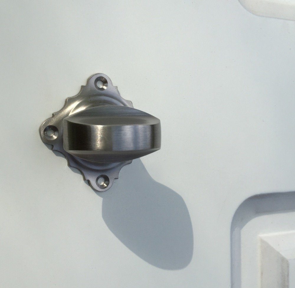 Ein hochwertiger Verschliesser mit griffigem Knauf für moderne und antike Türen. Als ansprechender Nickel Türbeschlag für Ihre Badezimmertür und als Drehverschluss an der Gästetoilette.