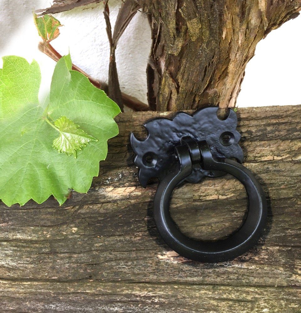 Ein rustikaler und sehr stabiler, nach historischem Original gearbeiteter Schubladengriff mit Ring.