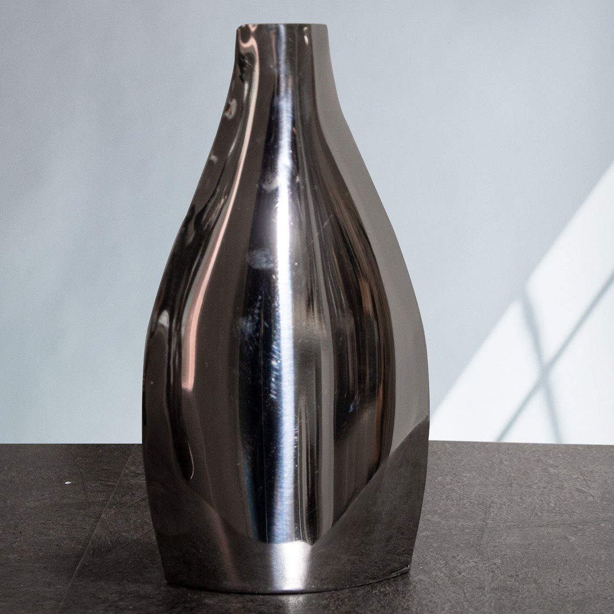 tags: Dekoration, Aluminium, Vase, Aluminium Vase, Blumenvase, Dekorative Vase, Flaschenform, Amphore, flach, silberfarbend