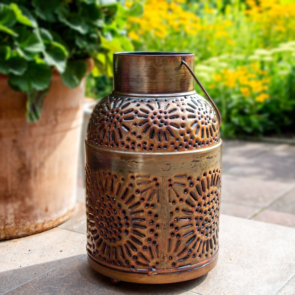 Lieferumfang: 1 Windlicht aus Eisen, Groß, Braun, Muster