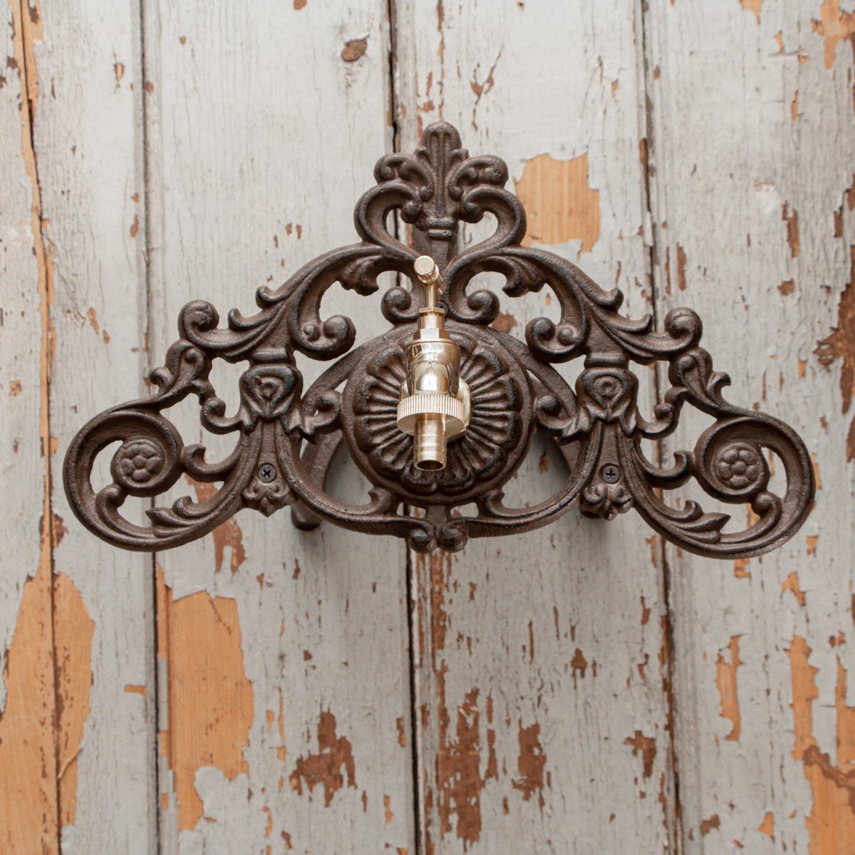 tags: Wandhalterung für Schlauch, Halter für Schlauch, Schlauchhalter Wand, Schlauchaufhängung, Gartenschlauchhalter, Aufhänger für Gartenschlauch, Dekoration, Antik, Garten, Schlauchhalter, Landhaus, Landhausstil, braun, Gusseisen, Ornament, Wasserhahn