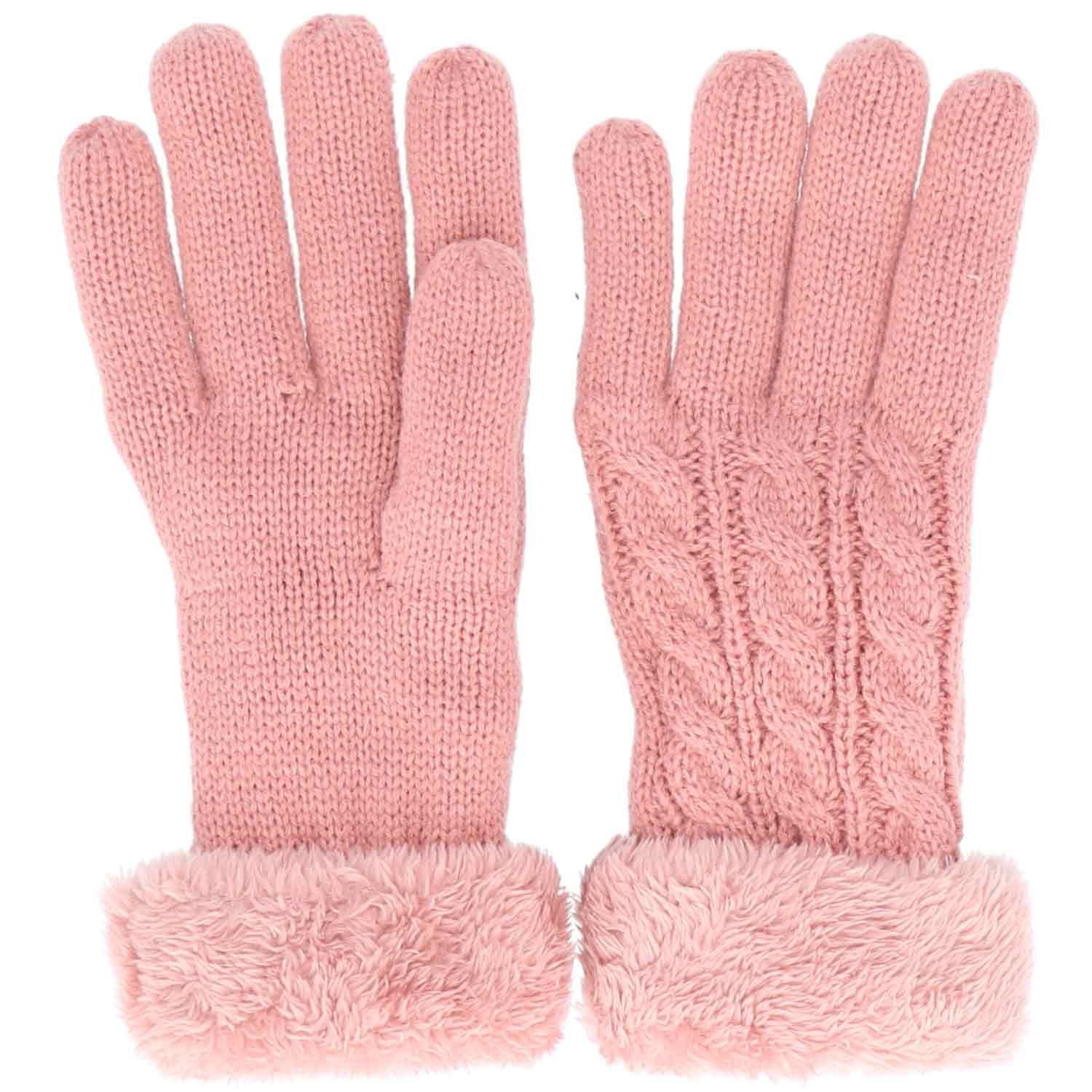 Strickmütze Antonio Damen Winter Fingerhandschuhe Teddy Futter rose