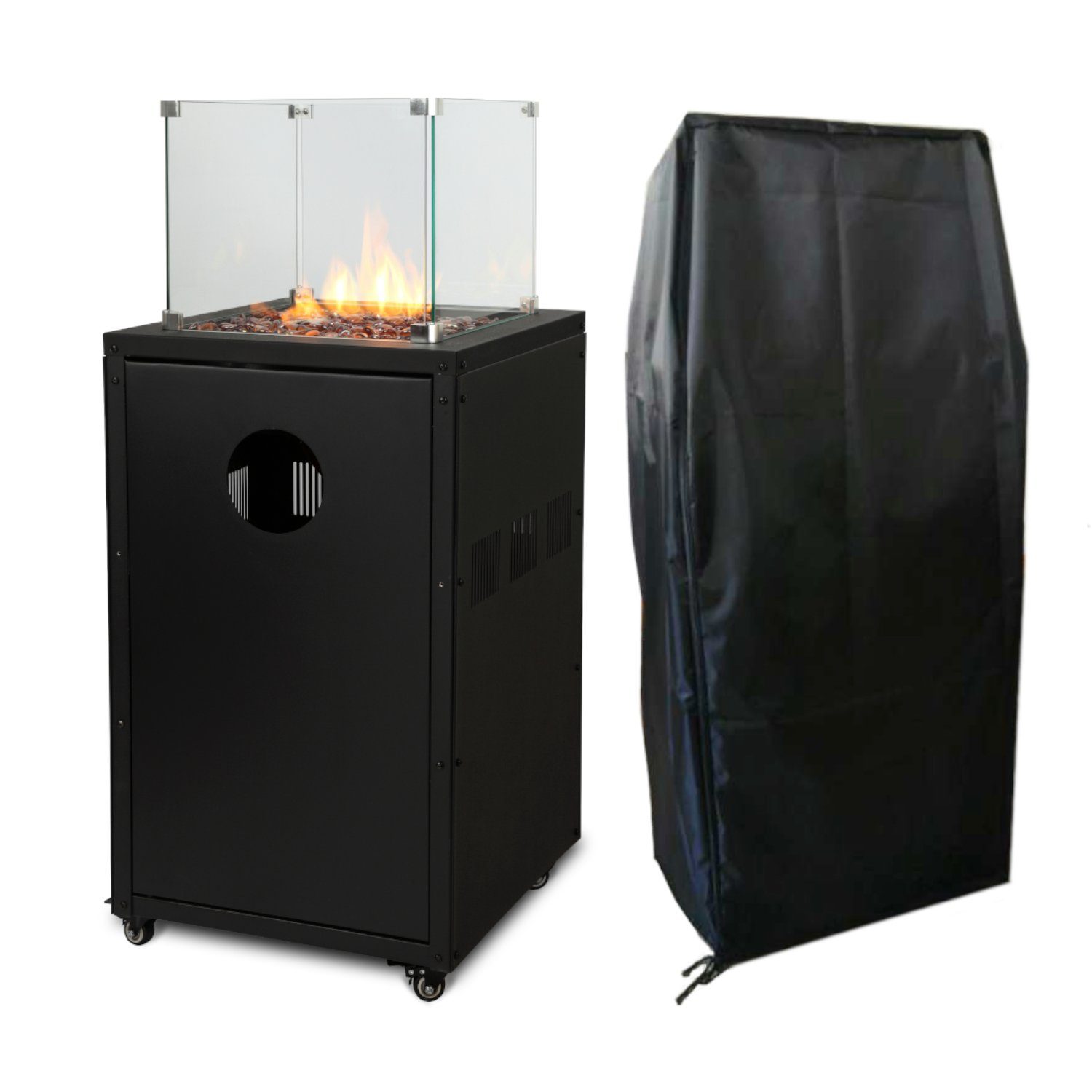 Dank den feststellbaren Rollen kann der Gasheizstrahler optimal positioniert werden und sieht dabei auch noch gut aus. Die Flamme mit der Heizleistung von 8kW ist durch Glas geschützt, so dass ein direktes Hineingreifen nicht möglich ist. Abgerundet wird das Design mit den mitgelieferten Deko Lavasteinen, die dem Ganzen auch ein natürliches Flair verpassen. Entscheiden Sie sich zwischen dem Heizpilz im traditionellen Anthraziten Design und einem Terrassenheizer im modern gehaltenen schwarz.