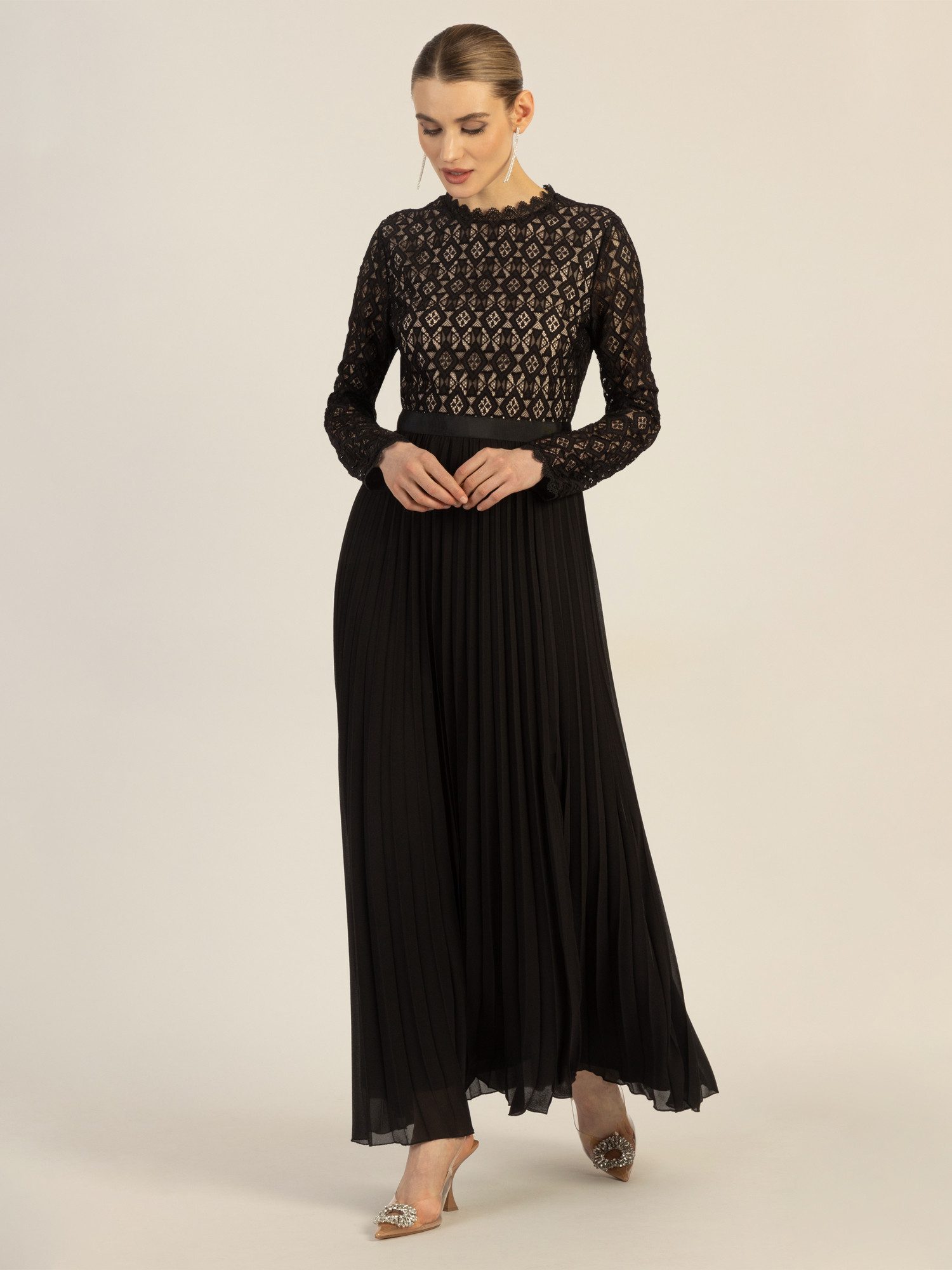 Materialzusammensetzung | Spitze: 55% Polyamid, 45% Baumwolle. Rockpart: 100% Polyester. Futter: 92% Polyester, 8% Elasthan |
