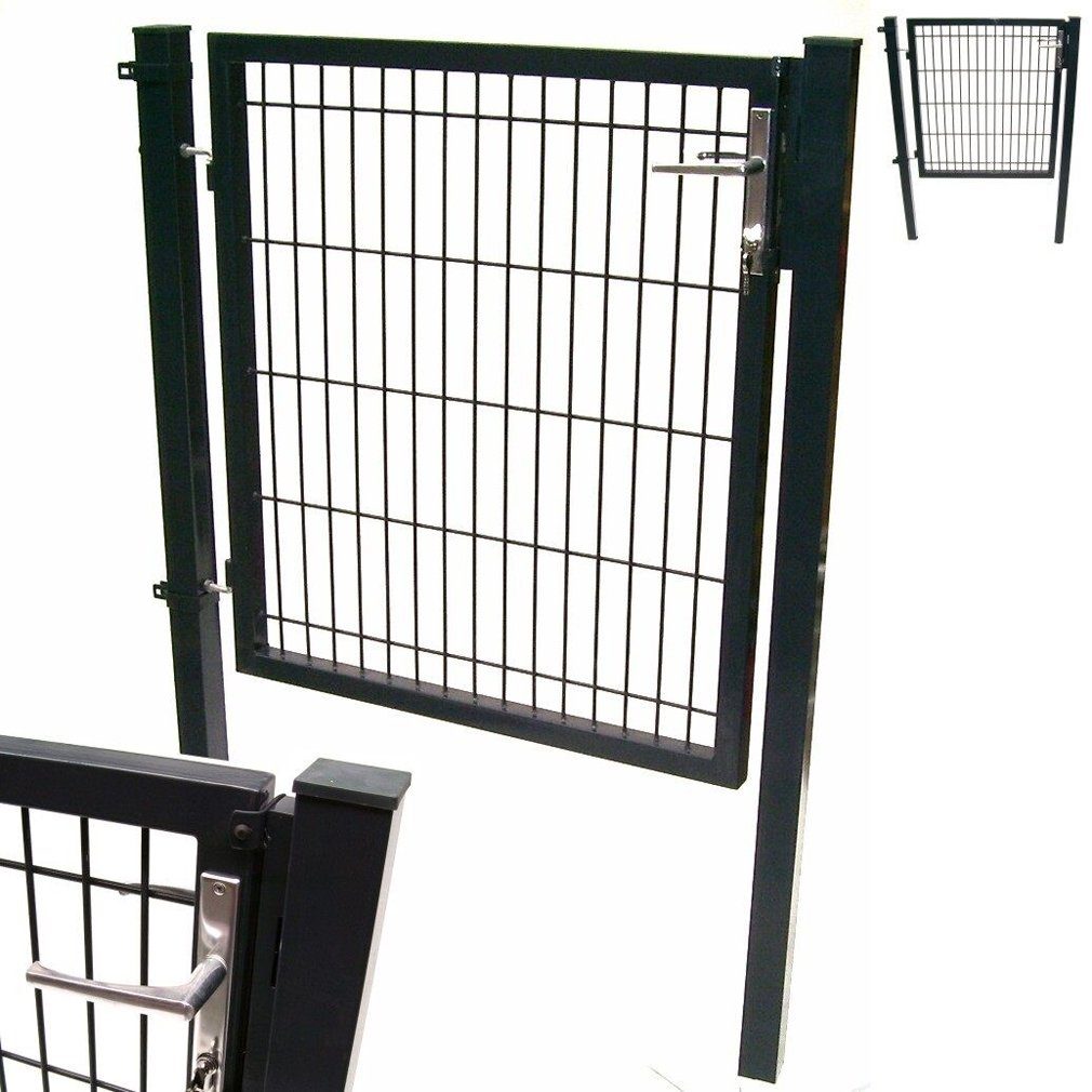 Dieses hochwertigen Stahlgitter-Gartentore eignen sich für diverse Zaunanlagen und Begrenzungen und sind durch die Verzinkung und anthrazit farbige Pulverbeschichtung robust und langlebig verarbeitet. Das Gartentor ist mit stabilen Quadrat-Pfosten, Alutürgriff, Rohrrahmenschloss für Profilzylinder und verstellbaren Scharnieraufhängungen ausgestattet. Als abschließbares Zauntor ist es zur Grundstücksabgrenzung und als Zuwegeschutz bestens geeignet.