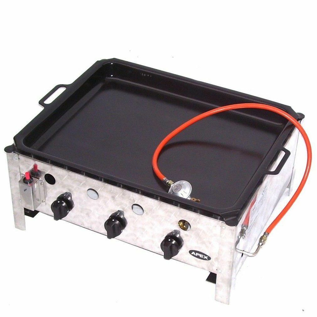 1 Stück, 3-flammiger Gasbräter mit Druckminderer und Gasschlauch