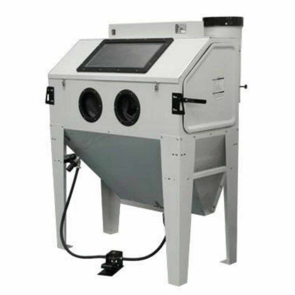 - Strahlkabine mit integrierter Absaugung garantiert beste Sicht und Schmutzabsaugung