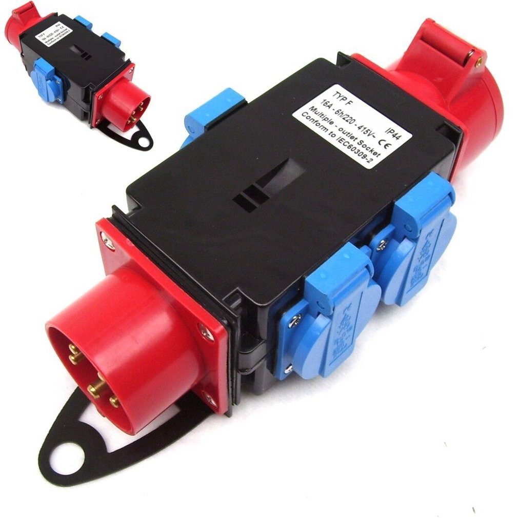 + 3x Schuko Stromverteiler für Kraftstrom CEE 16A 400V und Lichtstrom 3 x 230V Schukosteckdosen