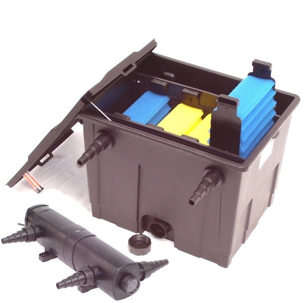 Mehrfachfilter für Teiche bis 12000 Ltr. Effektives Mehrfachfiltersystem mit einfacher und unkomplizierter Handhabung. Neue Teichfiltergeneration optimal für Teichgrößen bis ca. 6.000l mit Fischbesatz oder 12.000 l ohne Fischbesatz, je nach Verschmutzungsgrad. Die hohe Wasserdurchlaufmenge sorgt schnell und zuverlässig für klares Wasser. Filtermaterialien lassen sich durch ein Schiebe-System einfach säuber und auspressen. Mit Indikatorstift für Verschmutzungsgrad und Wasserstandskontrolle. Die aktuelle Wassertemperatur lässt sich an der integrierten Temperaturanzeige jederzeit bequem ablesen. Für noch besser Ergebnisse sorgt der UV-Lichtfilter UV-224 mit 24 Watt Leistung.