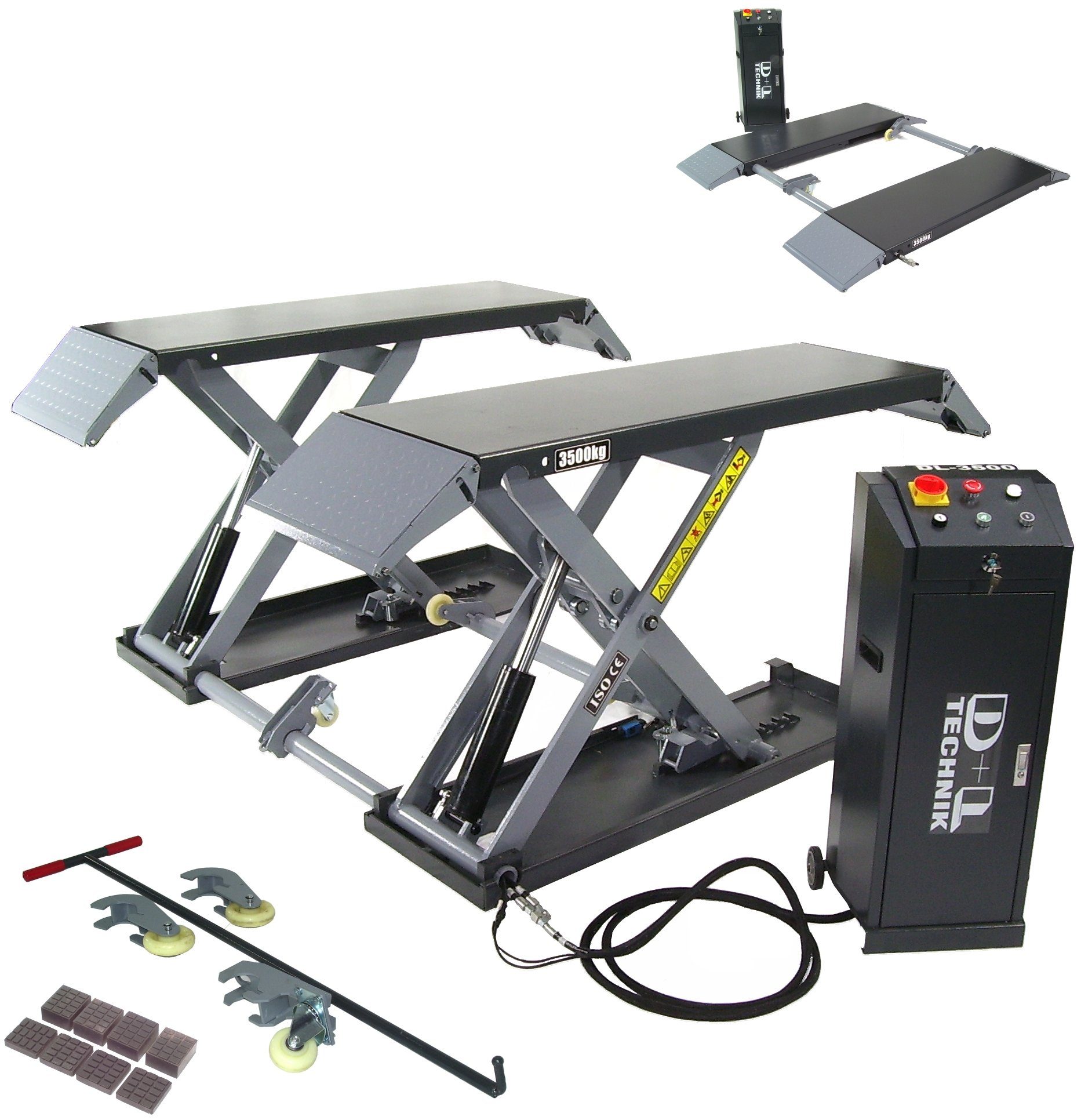 - die Scherenhebbühne 3500 kg wird mit Mobilkit ausgeliefert und kann damit leicht verfahren werden