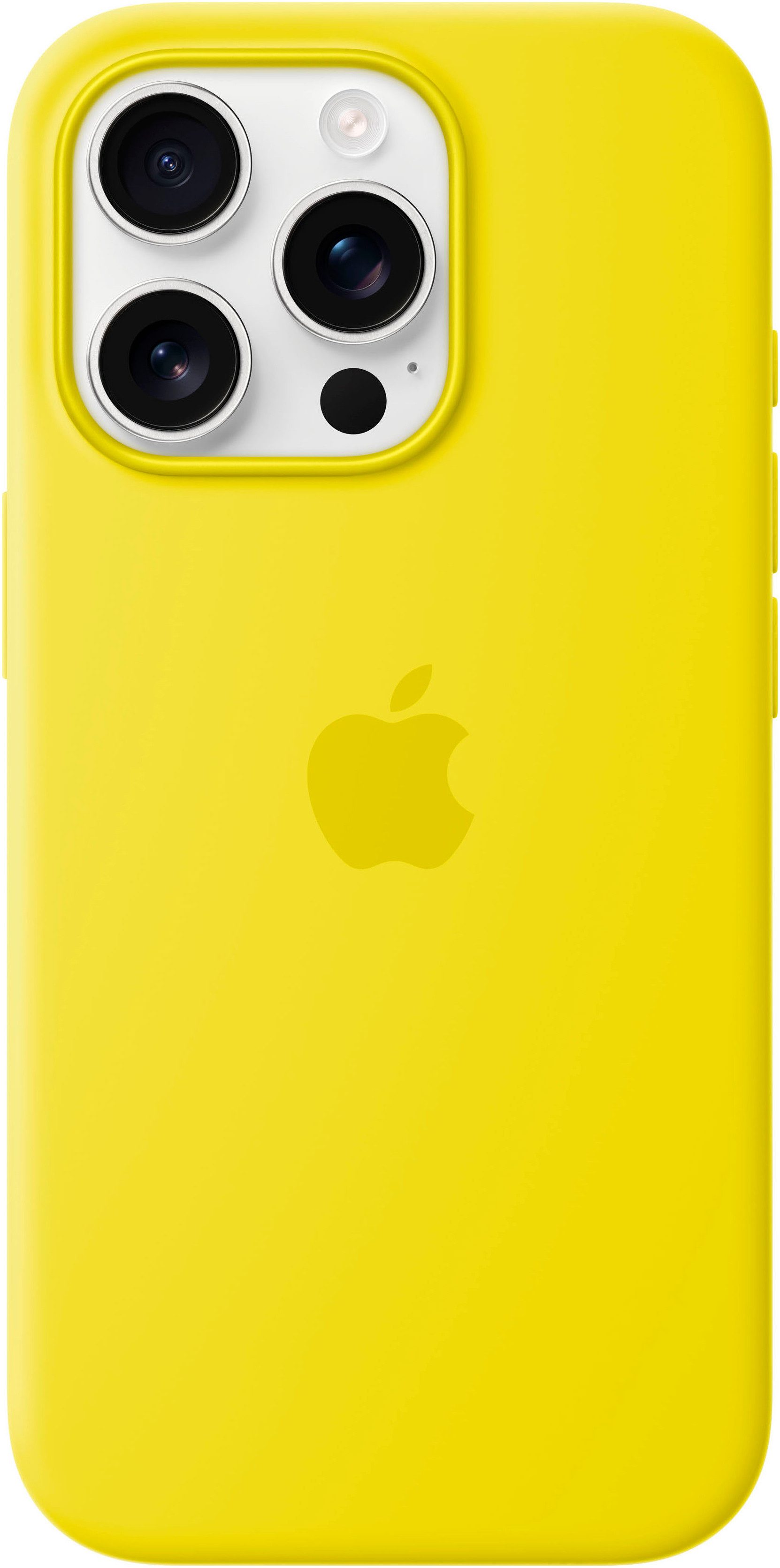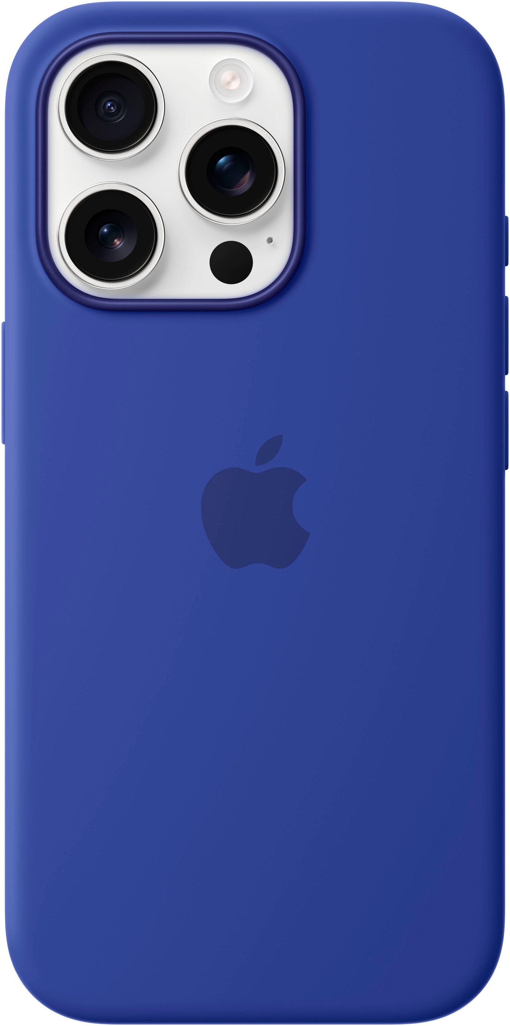 Dieses Silikon Case mit MagSafe wurde von Apple speziell für das iPhone 16 Pro entwickelt und schützt dein iPhone genauso gut, wie es aussieht. Das Case besteht zu 55 Prozent aus recyceltem Silikon­material. Seine glatte, weiche Außenseite fühlt sich gut an und liegt genauso in der Hand. Und innen bietet ein weiches Futter aus Mikrofaser zusätzlichen Schutz. Dieses Case funktioniert nahtlos mit der Kamera­steuerung. Es hat eine Saphir­kappe mit einer leitenden Schicht, die die Bewegungen deines Fingers auf dem Case zur Kamera­steuerung erkennen kann. Mit integrierten Magneten, die sich perfekt am iPhone 16 Pro ausrichten, hält das Case ganz einfach und sorgt für schnelleres kabel­loses Laden. Lass dein iPhone beim Laden einfach im Case und docke dein MagSafe Ladegerät an oder leg es auf dein Qi2 oder Qi zertifiziertes Ladegerät. Wie jedes von Apple entwickelte Case durchläuft es im Laufe des Design‑ und Применитьungs­prozesses Tausende von Teststunden. Deshalb sieht es nicht nur großartig aus, sondern ist auch dafür gemacht, dein iPhone vor Kratzern und bei Stürzen zu schützen.