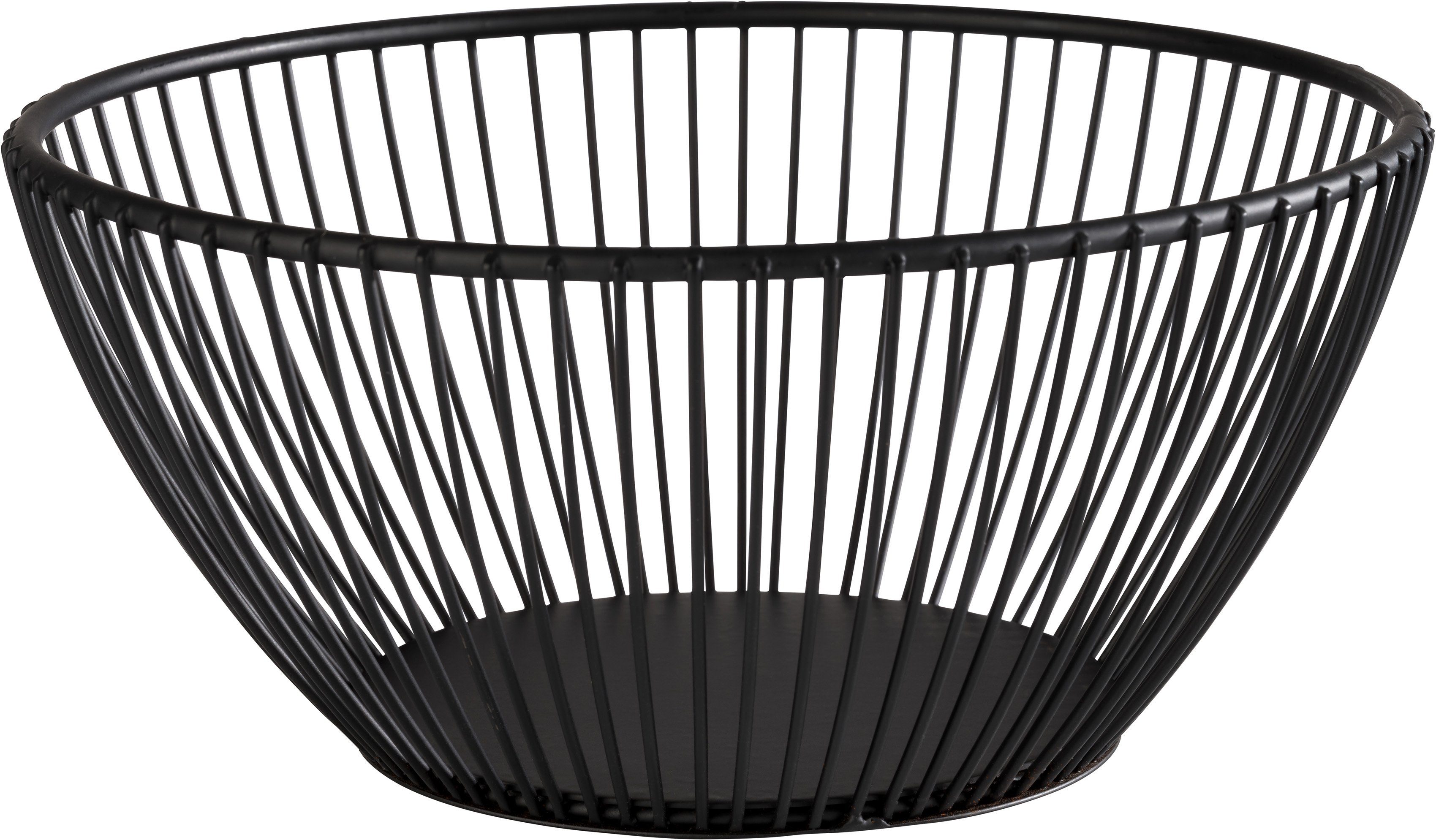 Der SVART Korb ist perfekt geeignet als Obstkorb, Gemüse- oder Brotkorb, hat die Maße (Ø x H) 20 cm x 8 cm und wiegt 290 g. Er besteht aus schwarzem Metall und ist daher besonders robust und pflegeleicht. Das Material hat eine angenehme Haptik und wirkt durch die matte Oberfläche besonders edel.