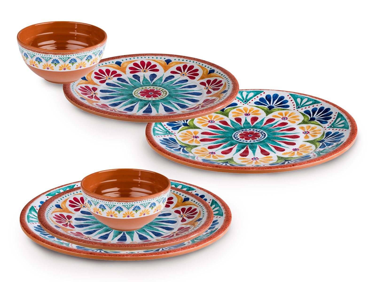 Melamin Ess-Geschirr Set im mediterranen Dekor für 2 Personen.