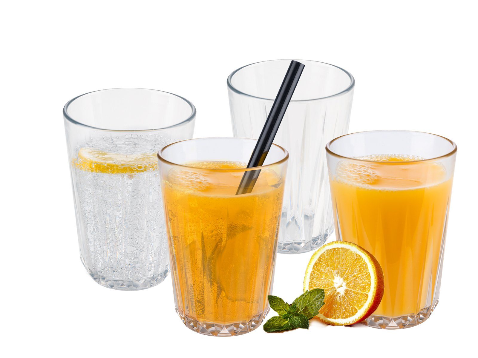 Trinkgläser aus Tritan sind unzerbrechlich, stapelbar, leicht, spülmaschinenfest und temperaturbeständig von -30° bis +95°