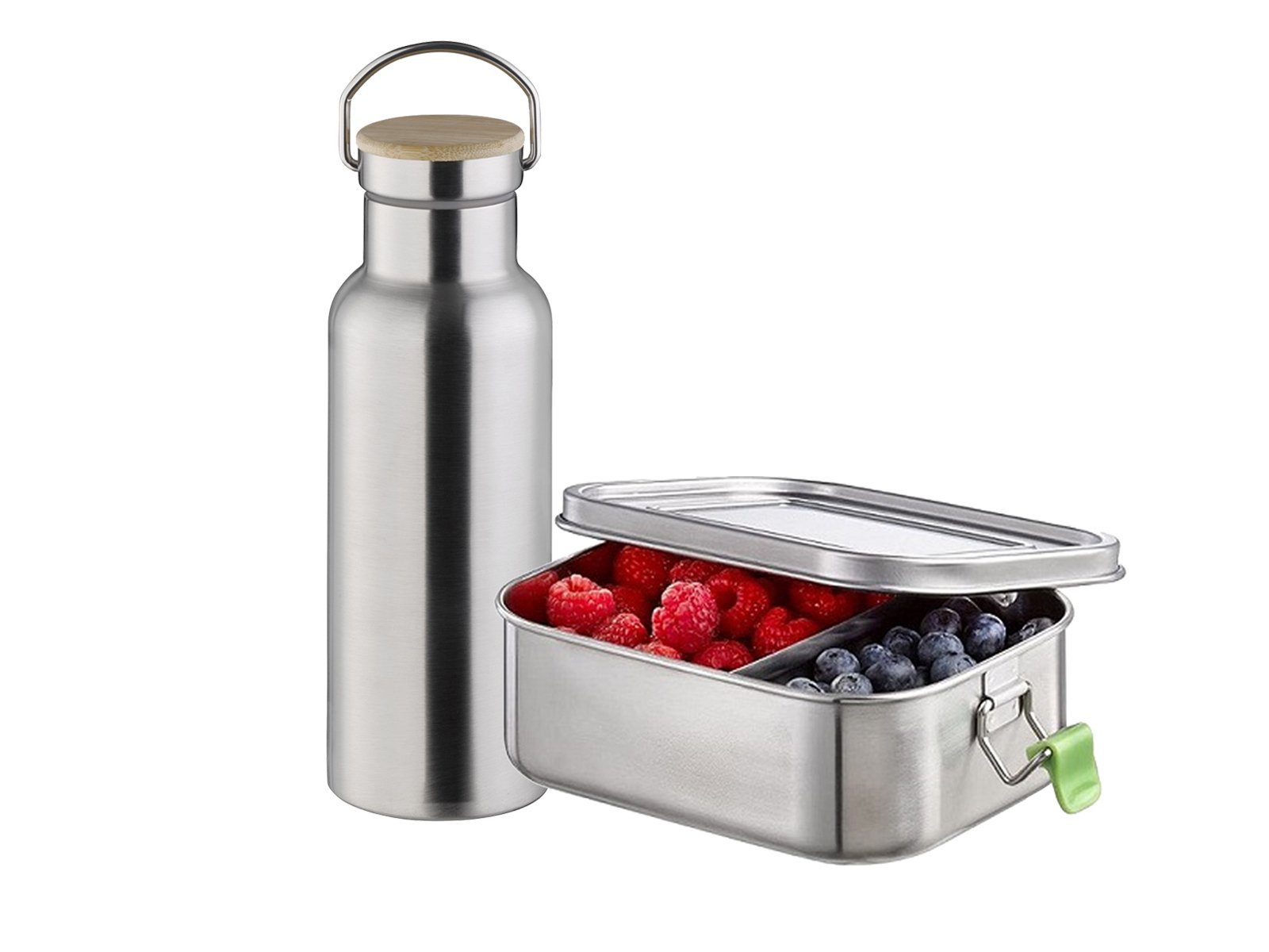 Ausstattung | Trinkflasche mit Ersatzdichtung, Lunchbox mit verstellbarem Trennsteg |