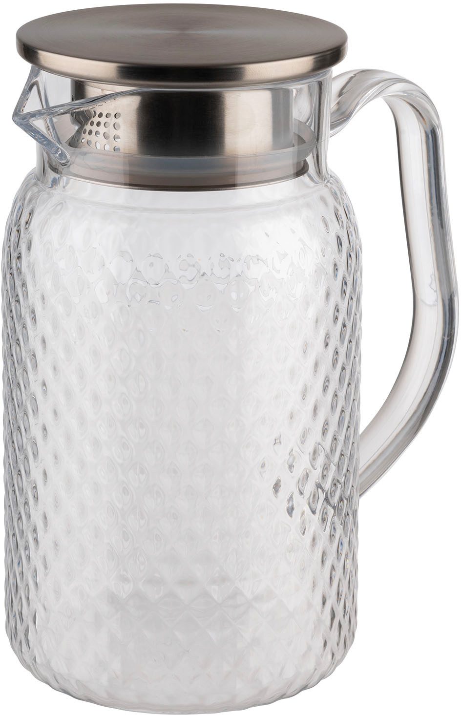 Entdecken Sie die perfekte Kombination aus Funktionalität und Eleganz mit unserer Saft-/Wasserkaraffe aus hochwertigem Polycarbonat. Mit einem Durchmesser von 10 cm, einer Höhe von 19 cm und einem großzügigen Fassungsvermögen von 1 Liter präsentiert sich dieses stilvolle Gefäß als unverzichtbarer Begleiter für erfrischende Getränke. Die Verwendung von Polycarbonat macht diese Karaffe nicht nur spülmaschinengeeignet, sondern auch äußerst schlagfest, was sie ideal für den täglichen Gebrauch in Ihrem Haushalt macht. Das Material ist zudem leicht und langlebig, was die Handhabung und Pflege noch komfortabler gestaltet. Der Edelstahldeckel mit Silikondichtung ist nicht nur ein optisches Highlight, sondern gewährleistet auch, dass Ihre Getränke frisch und auslaufsicher bleiben. Die Silikondichtung sorgt für eine sichere Abdichtung und verhindert ungewolltes Auslaufen, während der Edelstahldeckel einen Hauch von Raffinesse hinzufügt. Die klare Form und das moderne Design machen diese Karaffe zu einem Blickfang auf jedem Tisch. Ob Sie erfrischende Säfte, Wasser mit Fruchtstücken oder andere Getränke servieren möchten – dieses Gefäß bietet die perfekte Präsentationsmöglichkeit. Mit dieser Saft-/Wasserkaraffe holen Sie sich nicht nur ein praktisches Utensil, sondern auch ein stilvolles Accessoire in Ihre Küche oder auf Ihren gedeckten Tisch. Genießen Sie erfrischende Getränke in einem Gefäß, das durch seine Vielseitigkeit und Langlebigkeit überzeugt.
