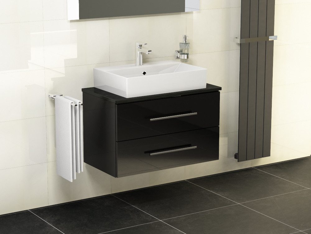 Mit dem Badmöbel-Set FL.80.KBL-HL.EG.SH holst du dir ein stilvolles Highlight ins Badezimmer. Der 80 cm breite Unterschrank in elegantem Weiß Hochglanz bietet zwei große Softclose-Schubladen mit Vollauszug und hochwertigen Metallzargen – ideal für Badtextilien, Pflegeartikel oder Zubehör.