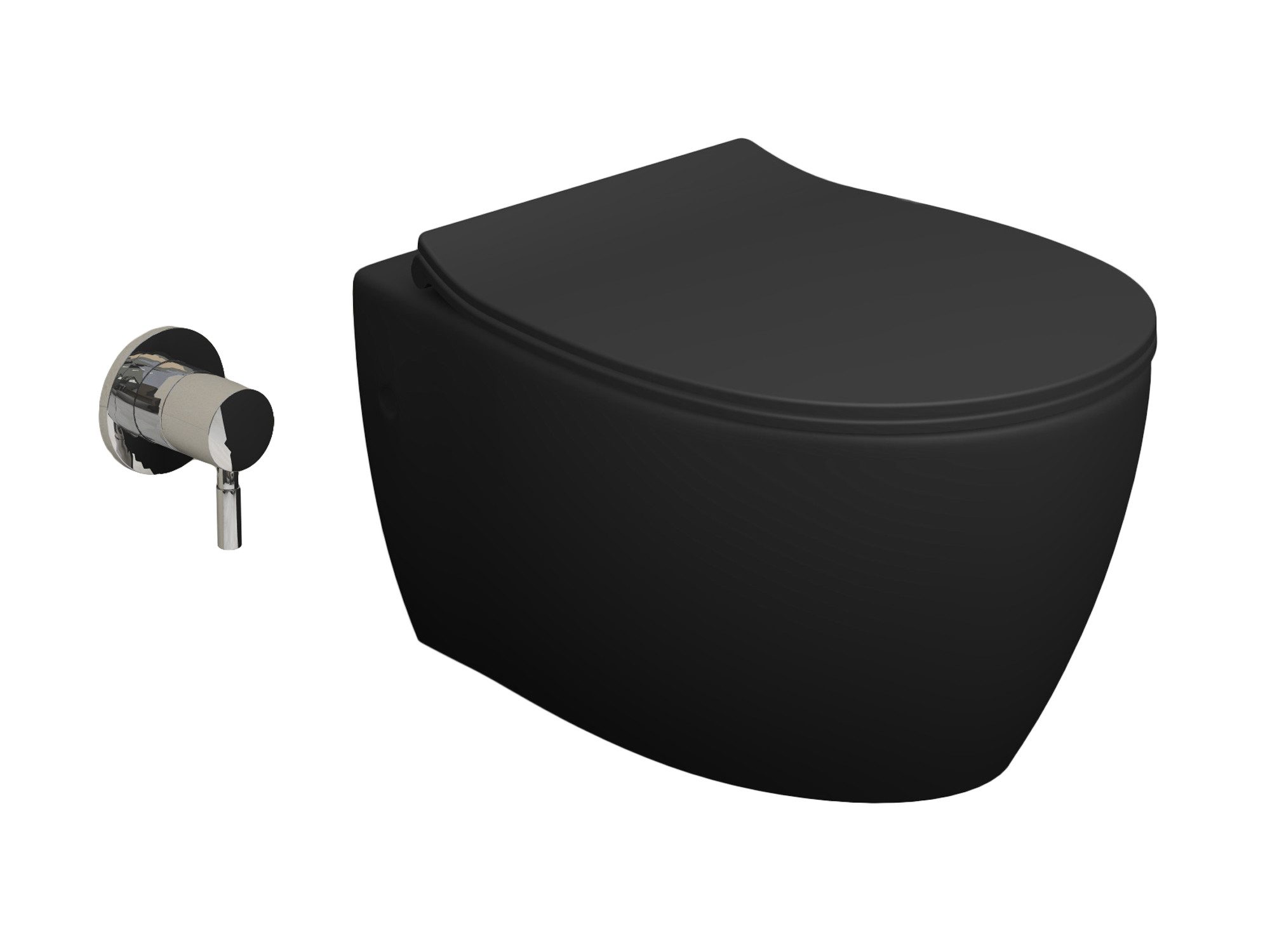 Erleben Sie das ultimative Upgrade für Ihr Badezimmer mit unserem schwarzen Dusch-WC! Perfekt für Intimhygiene, bietet das Taharet eine individuell einstellbare Düse für einen maßgeschneiderten Wasserstrahl – die Fusion von Toilette und Bidet in einem Gerät! Das stimmige Design mit O-Form und randlosem Aufbau garantiert eine mühelose Reinigung und verhindert Keimbildung – ein echtes Hygienewunder! Mit genormten Anschlüssen und einer Unterputzregulierung für die Wassermenge ist das Taharet praktisch und sicher in der Anwendung. Die eingebaute Softclose-Funktion sorgt für sanftes Спрятать des Deckels und der aufwändige Brennprozess der Keramik gewährleistet eine lange Lebensdauer mit minimalen Abnutzungsspuren. Mit Maßen von 510 mm Длина, 363 mm Breite und 340 mm Höhe (ohne Deckel) sowie einer einfachen Montage von oben bietet das Taharet alles, was Sie für Ihr Badezimmer brauchen. Bestellen Sie jetzt und erhalten Sie das spülrandlose Taharet-WC in mattem Schwarz zusammen mit einem Softclose WC-Sitz aus robustem Duroplast für ein Badezimmer, das Eleganz und Funktionalität vereint