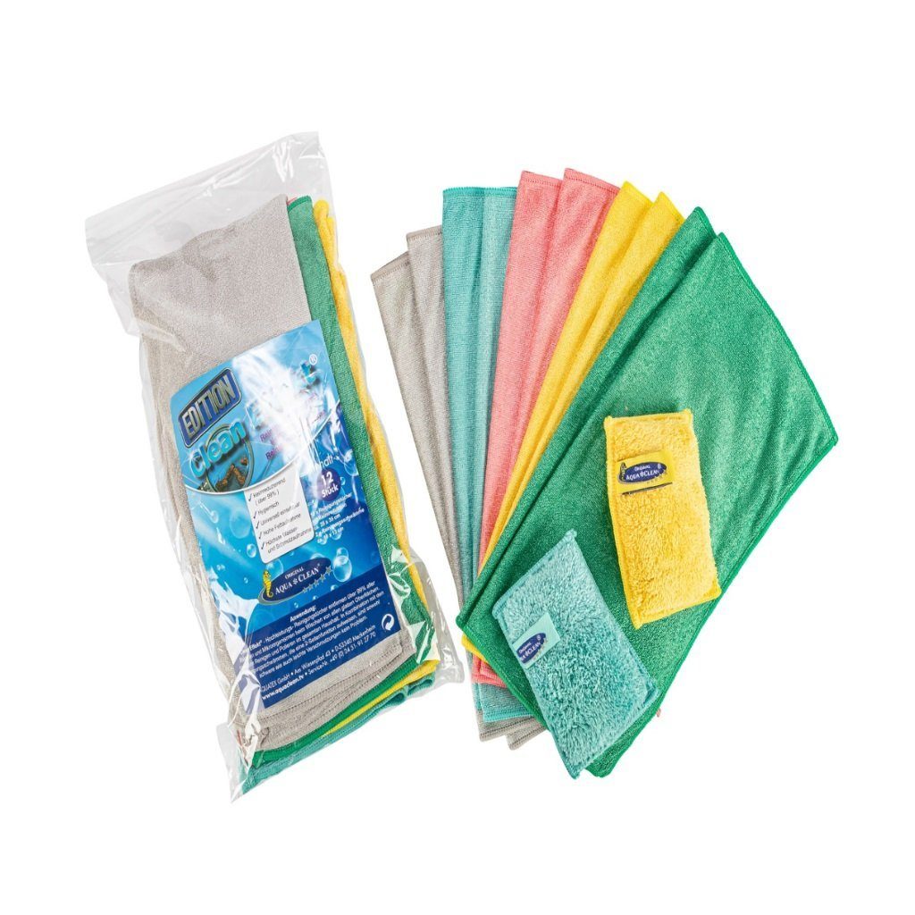 - AQUA CLEAN Clean Effekt Reinigungstücher entfernen über 99 % aller Bakterien und Mikroorganismen beim Wischen von allen glatten Oberflächen - Ideal zum Reinigen und Polieren im gesamten Haushalt - In Kombination mit den 2-Seiten-Funktion Reinigungsschwämmen sind sowohl leichte als auch hartnäckige Verschmutzungen kein Problem - Hohe Fettaufnahme - Höchste Wasser- & Schmutzaufnahme Set Inhalt: 10x AQUA CLEAN Clean Effekt Reinigungstücher ca. 35 x 35 cm 2x AQUA CLEAN Clean Effekt Reinigungsschwämme ca. 13 x 10 cm Material: 65 % Polyester 35 % Polyamid Pflegehinweis: Waschbar bis 60°C ( ohne Weichspüler ) Trockner geeignet Tücher nicht in die Weißwäsche geben Mit ähnlichen Farben waschen