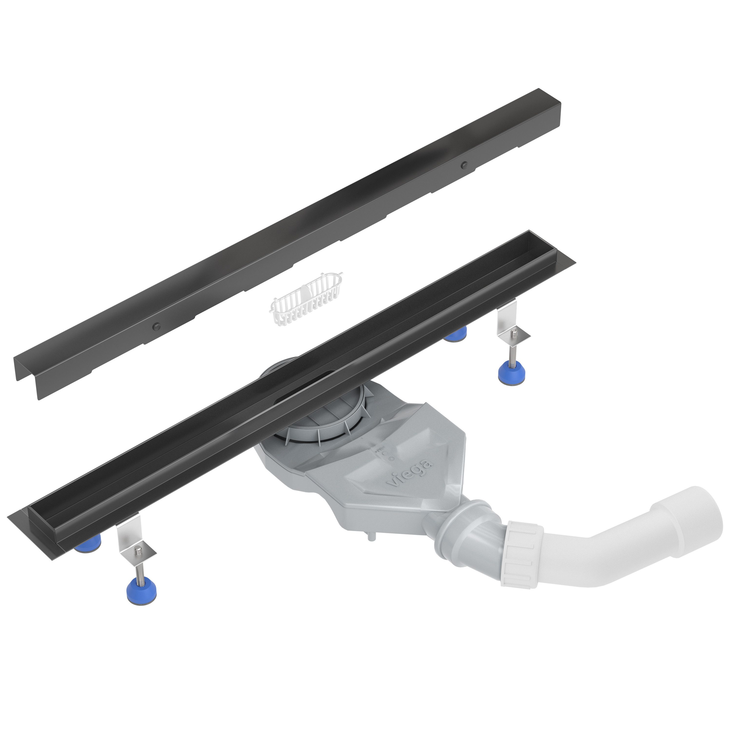 Duschrinne Slim Edelstahl Schwarzmatt, Haarsieb, Viega-Siphon