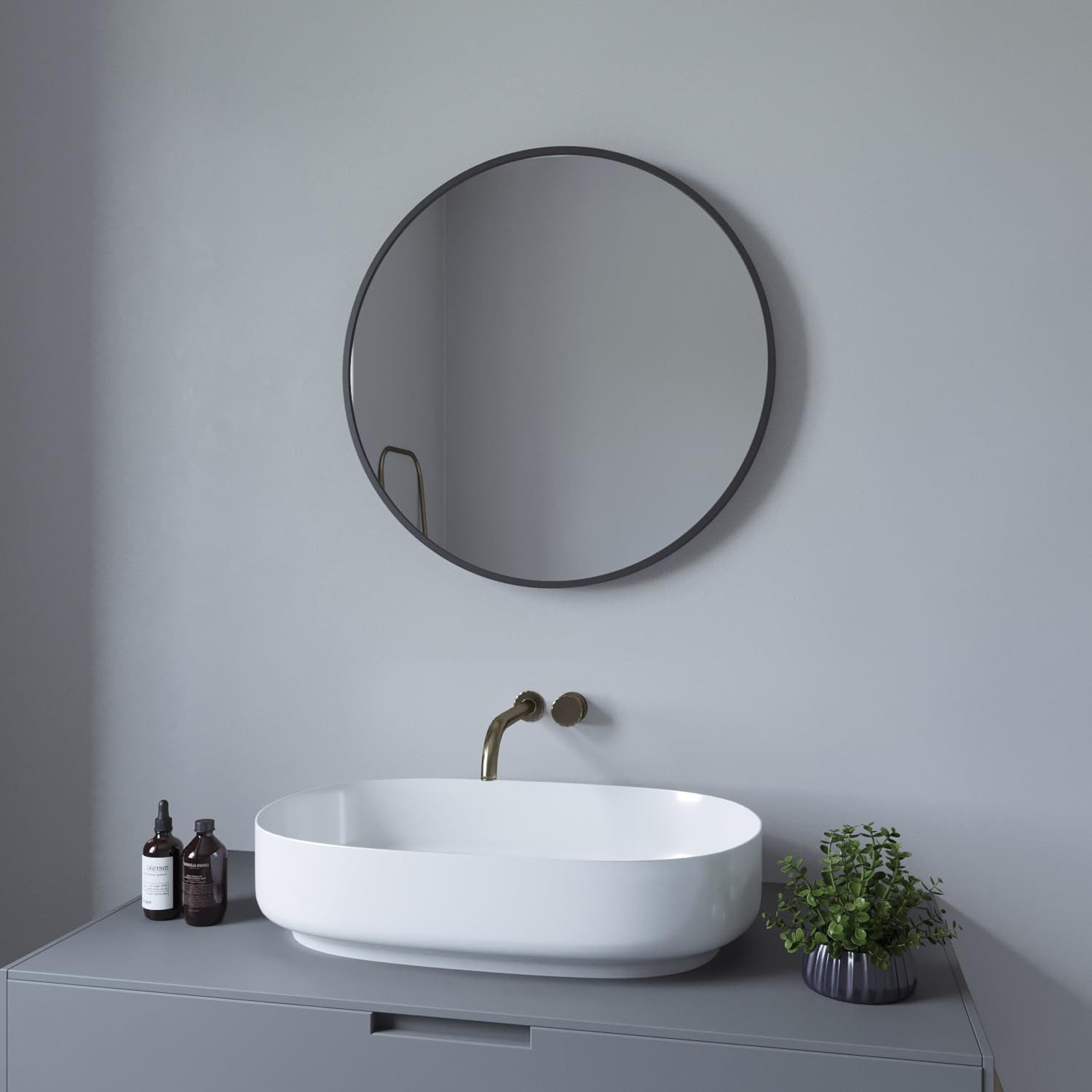 Modellbezeichnung | Dekorativer runder Wandspiegel in schwarz matt |