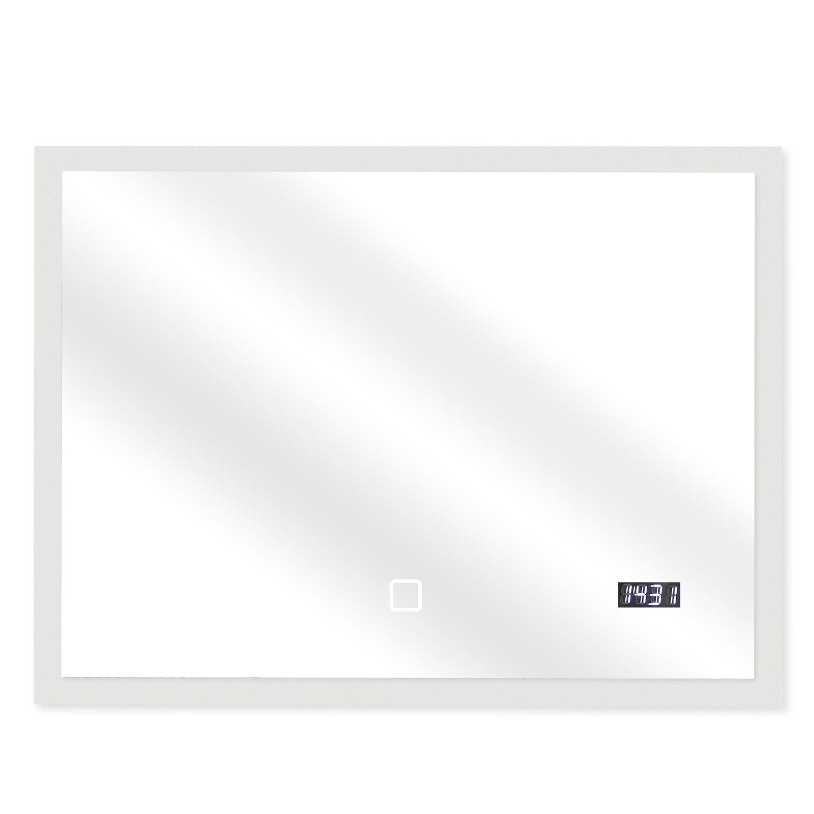 Verleihen Sie Ihrem Badezimmer mit unserem dünnen, beleuchteten Spiegel eine futuristische Atmosphäre. Diese Badezimmerspiegel mit Lichtern verfügen über eine Digittaluhr.berührunsbetätigte Spiegel liefern eine spezielle Umgebungsbeleuchtung, die Ihrer Stimmung entspricht: Von Warmweiß über neutral auf Kaltlicht einstellbar.