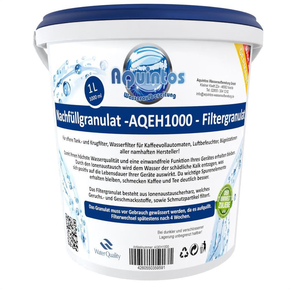Aquintos Kalkschutz++ Nachfüll Granulat für Wasserfilter Kaffeevollautomaten Tischwasserfilter Filterpatrone Aquintos-Water-Technologie 1Liter Refill Filtergranulat AQEH1000 auch für sehr hartes Wasser geeignet.