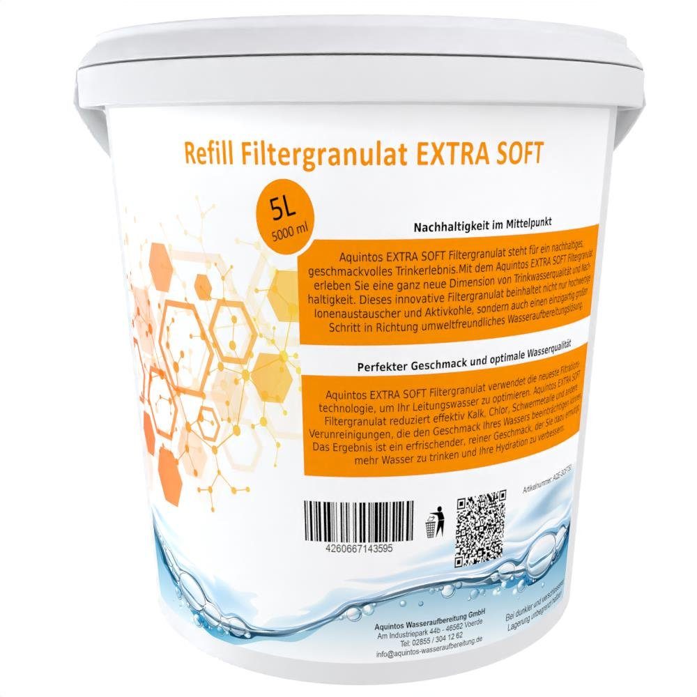 Aquintos EXTRA SOFT Filtergranulat reduziert effektiv Kalk, Chlor, Schwermetalle und andere Verunreinigungen, die den Geschmack Ihres Wassers beeinträchtigen können. Das Ergebnis ist ein erfrischender, reiner Geschmack, der Sie dazu ermutigt, mehr Wasser zu trinken und Ihre Hydratation zu verbessern.