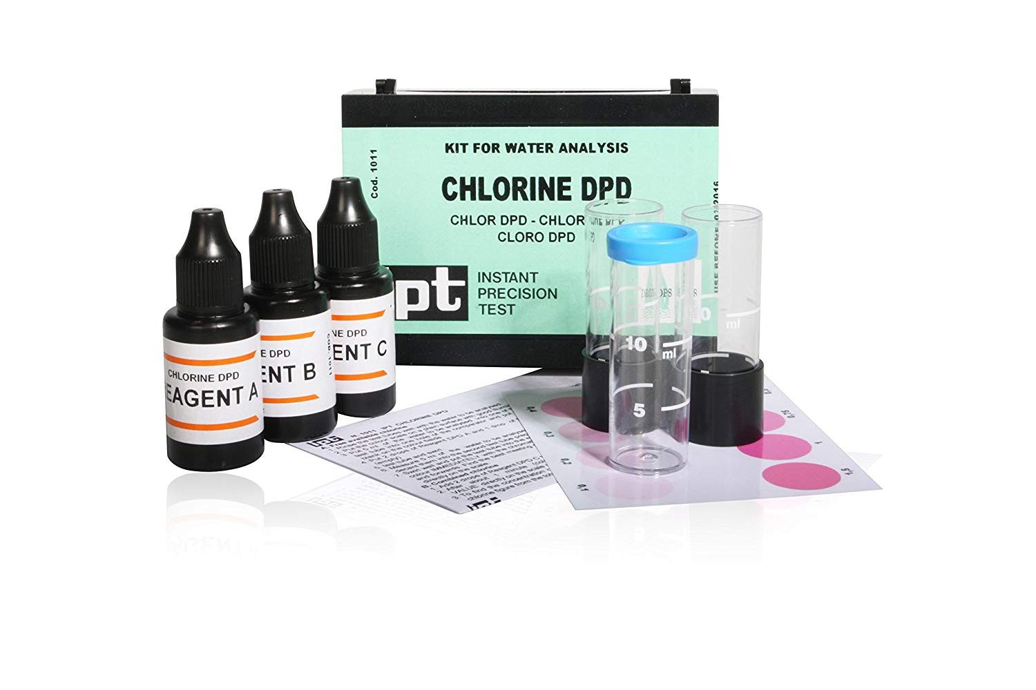 Das Messprinzip basiert auf einer kolorimetrischen Reaktion. Durch Zugabe des Reagenz zur Wasserprobe und anschließender Farbvergleich mit der mitgelieferten Farbskala lässt sich der freie Chlorgehalt ablesen.