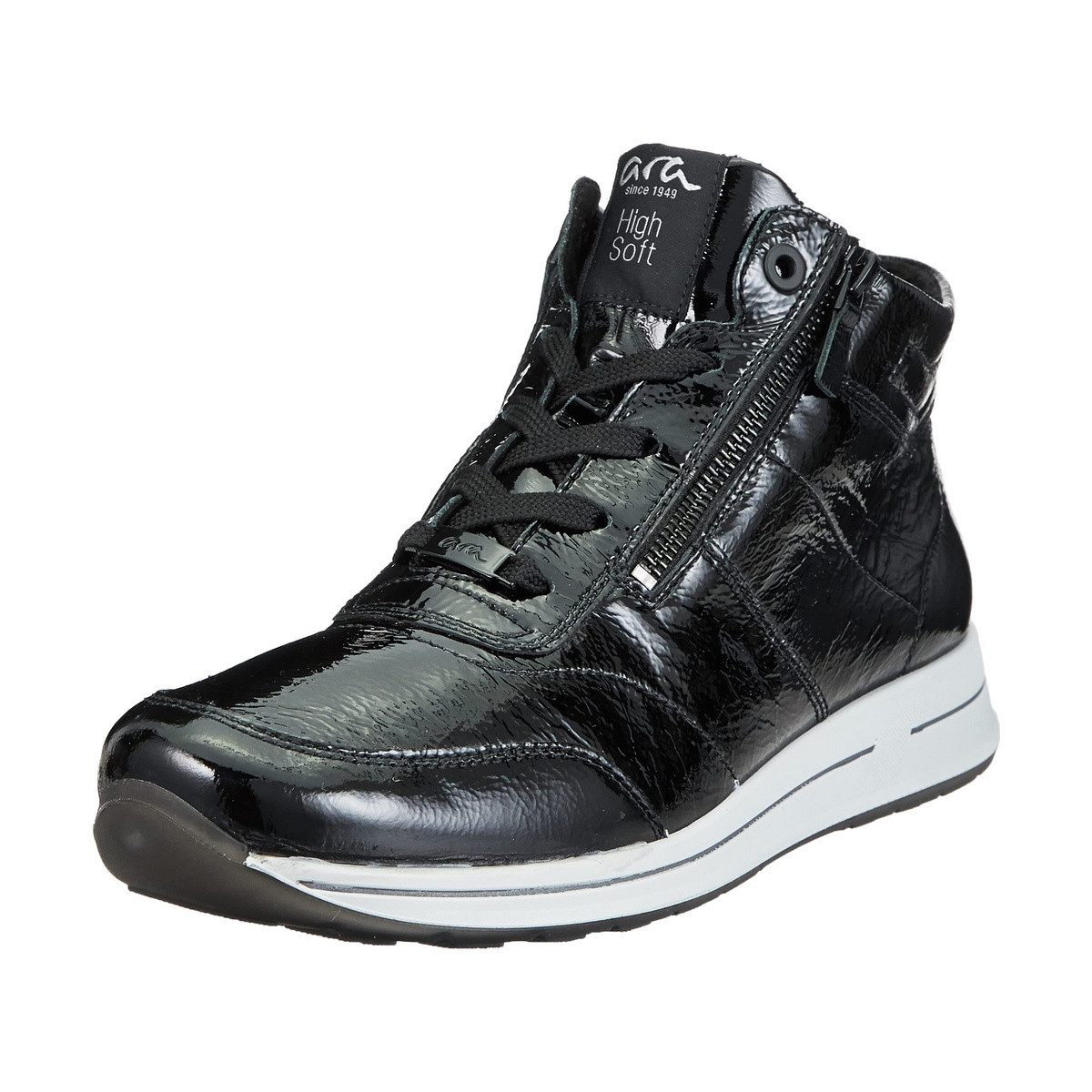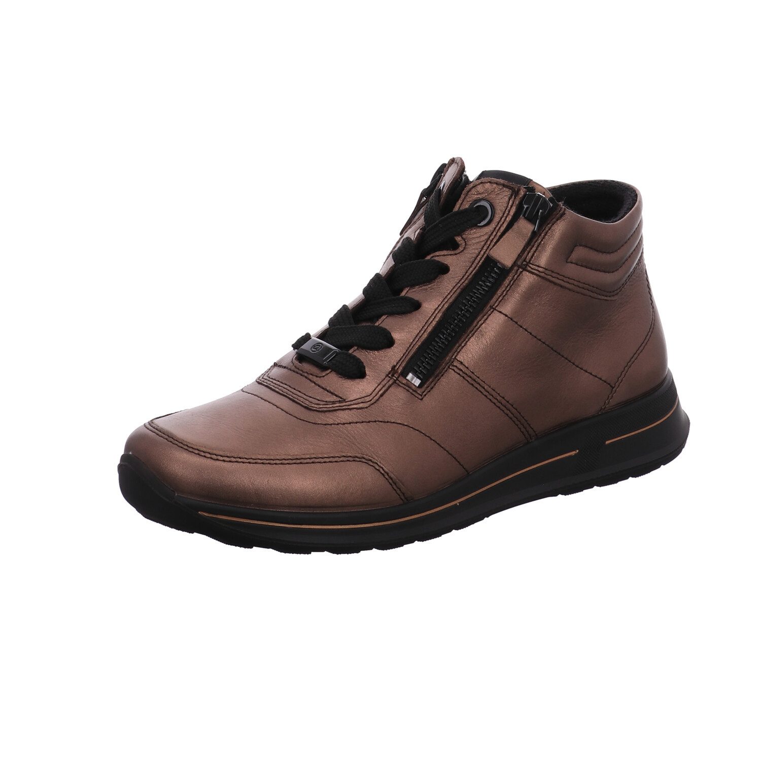 Der Hightop Sneaker von ara lädt zum Wohlfühlen ein! Weiches Leder verleiht ihm eine wunderbare Optik, die auf Anhieb überzeugt. Besonders bequem ist der Schuh dank der weichen Rundumpolsterung am Schaft, welche unangenehme Druckstellen vermeidet. Leichtes und schnelles An- und Ausziehen wird neben der Schnürung durch die beiden seitlichen Reißverschlüsse unterstützt. Für wahre Wohlfühlmomente sorgt das weiche Frotteefutter auf Bambusbasis. Dieses Material ist sehr angenehm zu tragen und sorgt für ein gutes Fußklima, da es wunderbar die Feuchtigkeit absorbiert und schnell trocknet. Auch das wechselbare Fußbett ist nicht nur weich gepolstert, sondern ebenfalls mit Frottee bezogen. Schließlich ist der Schnürer auch aufgrund der innovativen HighSoft Technologie besonders bequem. Müde Füße gehören damit der Vergangenheit an. Einen sportlichen Look erhält der Schuh durch die Keilsohle. Mit dieser Stiefelette von ara sind modebewusste Frauen bestens ausgestattet.