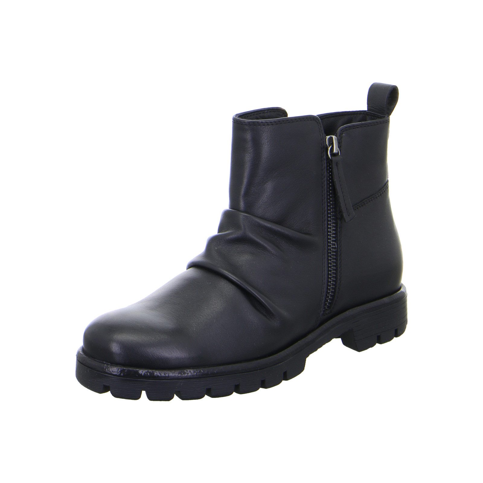 Diese elegante Stiefelette überzeugt nicht zuletzt durch das schlichte und zeitlose Design. Als Obermaterial wurde hochwertiges, weiches Leder verwendet, das den Fuß sanft umschmeichelt. Innen ist die Stiefelette mit einem weichen Warmfutter ausgestattet, damit kalte Füße kein Thema mehr sind. Dank der bequemen Highsoft-Funktion aus weichem Obermaterial und einer Sohle mit spezieller Schaumeinlage im Ballenbereich ist bei jedem Schritt für ein angenehmes Wohlgefühl gesorgt. Sie nimmt das Fußgewölbe sanft auf und bietet hohe Flexibilität. Ein echter Pluspunkt ist außerdem das Wechselfußbett, welches sich bei Bedarf mit wenigen Handgriffen herausnehmen und durch eigene Einlagen ersetzen lässt. Die beiden Reißverschlüsse innen und außen sind äußerst praktisch, denn sie erleichtern das An- und Ausziehen sehr. Für einen sicheren Auftritt sorgt die rutschhemmende Sohle. Mit einem kleinen Blockabsatz und stilvollen Falten bieten die Stiefeletten sowohl Mode als auch Komfort. Kombinieren Sie sie mit einem schicken Business Outfit oder einer lässigen Jeans für einen vielseitigen und trendigen Look.