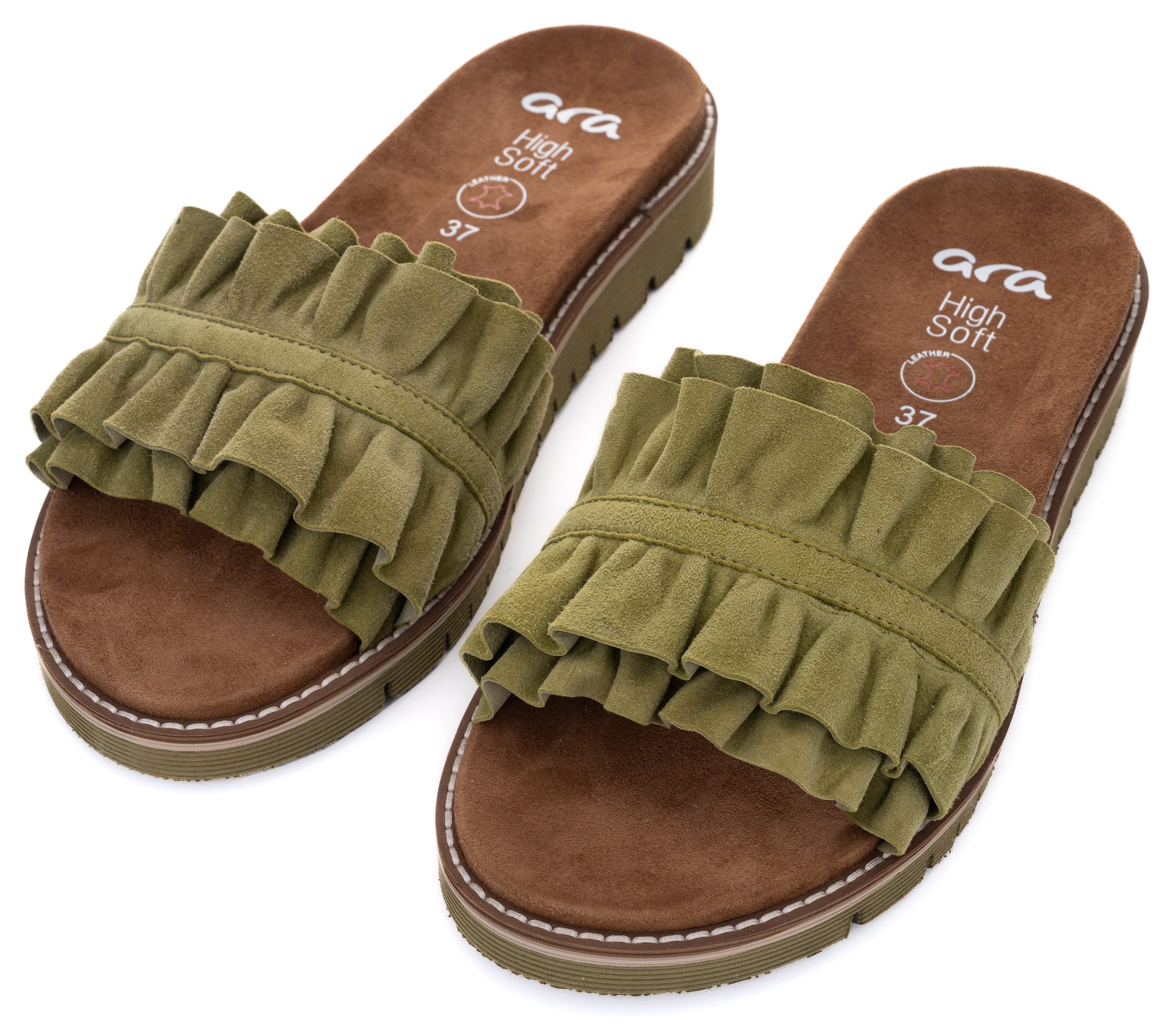 Schau dir die Pantoletten von Ara mal genauer an! High Soft Technologie garantiert einen weichen und gedämpften Auftritt.