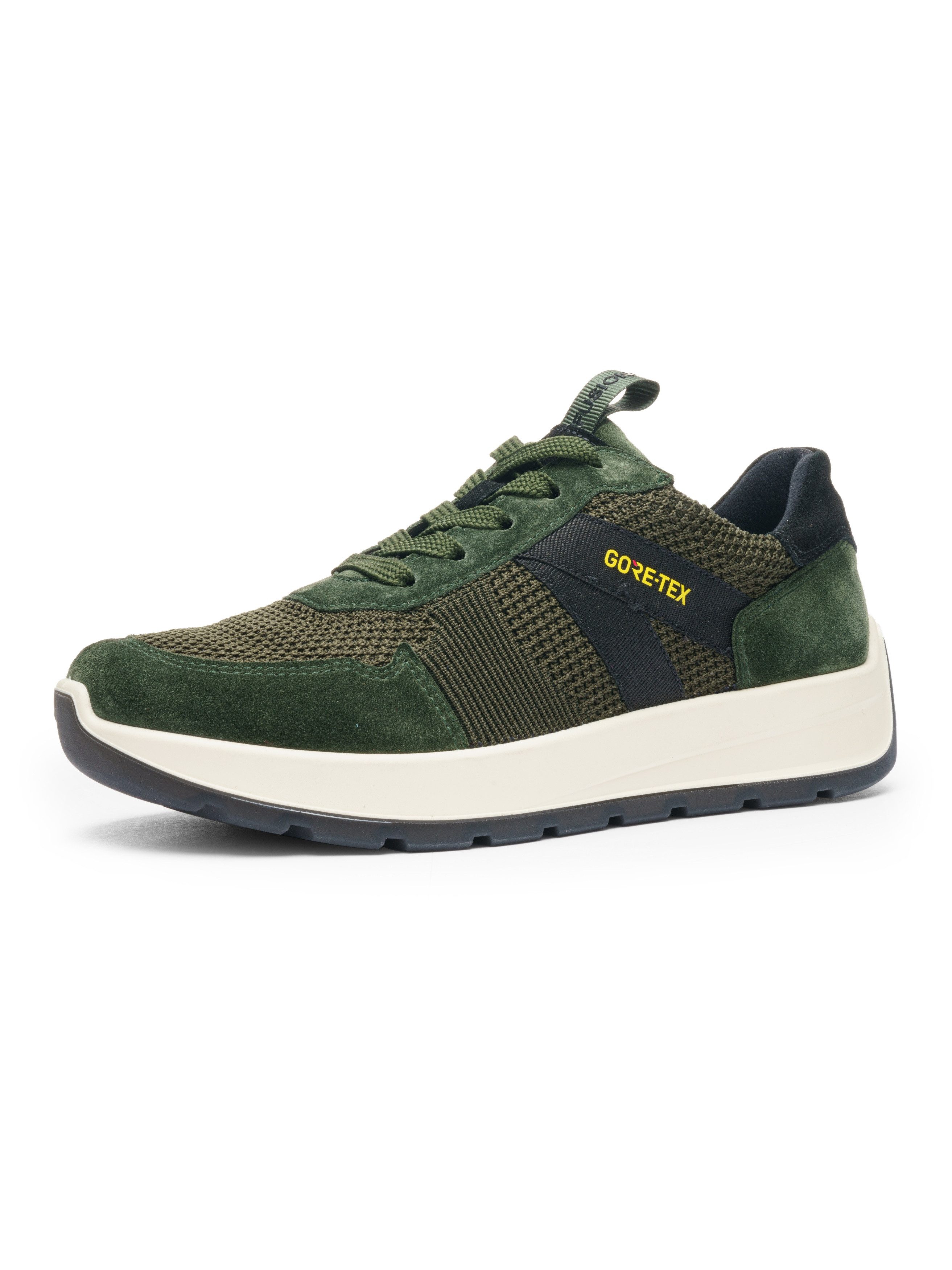 Kein Druck, nur Wohlgefühl: das wird Ihnen mit der Fusion 4 Funktion geboten. Der sportliche Schuh ist ausgestattet mit einem HiFlex-Strickschaft, der die Knöchel weich umschließt und der Entstehung von Druckstellen vorbeugt. Mit ihrer einzigartigen Lamellenstruktur macht die Dynergy-Sohle dieses Schuhs endlich Schluss mit Gelkissen. Sie verringert den Druck beim Auftreten und unterstützt so den Tragekomfort, was für ein ermüdungsfreies Gehen sorgt. Als Obermaterial wirken Leder und Textil im Zusammenspiel und lassen keine Wünsche offen. Wind und Wetter kann diesem Sneaker dank der in das Innenfutter eingearbeiteten Gore-Tex-Membran nichts anhaben, denn sie schützt effektiv vor nassen Füßen und sorgt durch ihre atmungsaktiven Eigenschaften dafür, dass Sie keine Gedanken an mögliche Witterungen mehr verschwenden müssen. Muskulatur und Bänder werden durch das Wechselfußbett geschont, welches sich leicht auswechseln lässt oder zum Lüften herausgenommen werden kann. Zudem wurde bei der Produktion breitere Füße berücksichtigt, denn der Schuh wurde in einer H-Weite hergestellt. So wurden etliche, hochwertige Technologien in diesem rundum gelungenen Sneaker vereint.