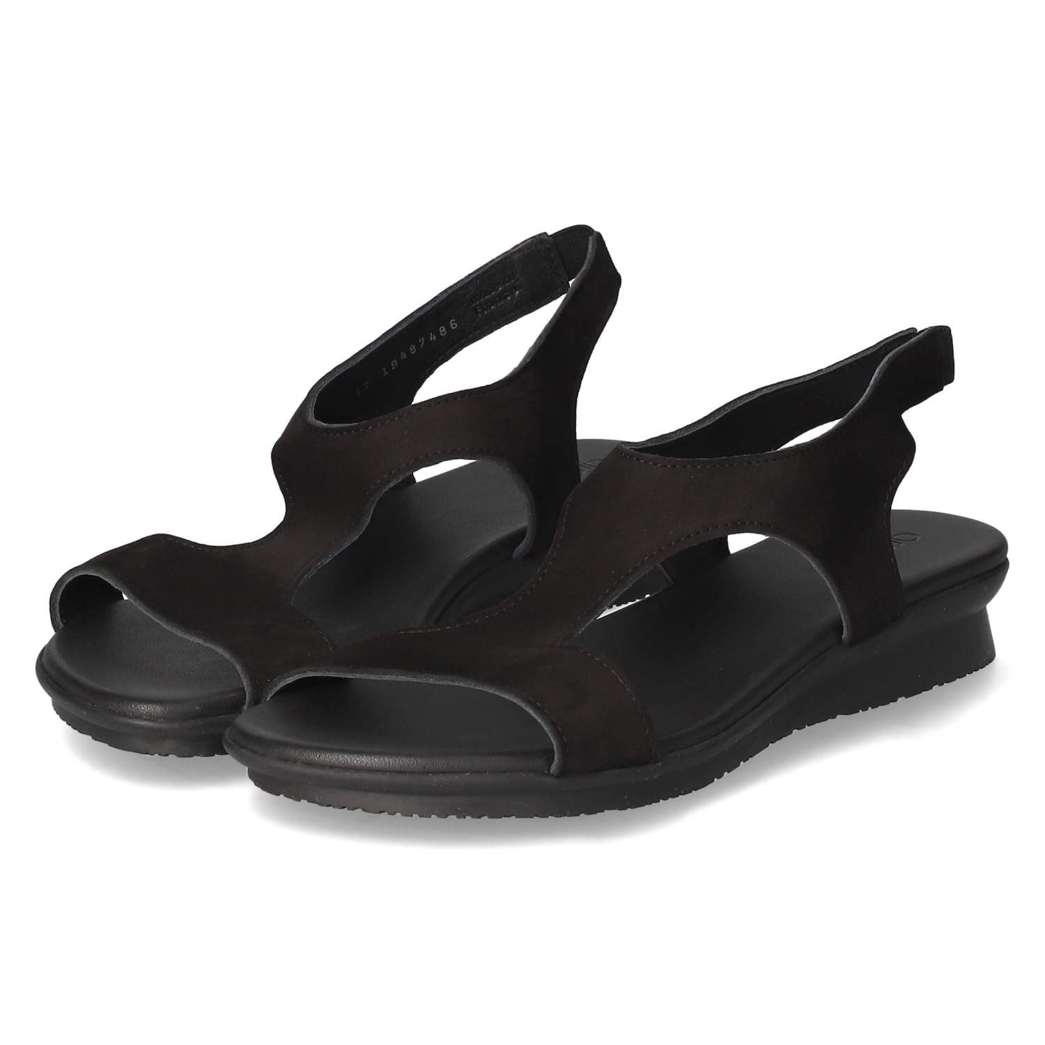 Die Arche Damen Sandalen AURIAN in Schwarz aus hochwertigem Rauleder bieten eine gelungene Kombination aus Komfort und zeitlosem Design. Dank des besonders weichen Obermaterials und des Innenfutters aus Leder fühlen sie sich angenehm am Fuß an. Ein kleiner Elastikeinsatz sorgt für eine optimale Passform, während das gepolsterte Lederfußbett zusätzlichen Komfort bietet. Die sehr flexible, rutschhemmende Laufsohle unterstützt ein sicheres und bequemes Gehen. Diese eleganten Sandalen passen perfekt zu verschiedenen Outfits – ob zu einer sommerlichen Leinenhose oder einem schicken Kleid – und sind ein stilvoller Begleiter für warme Tage.